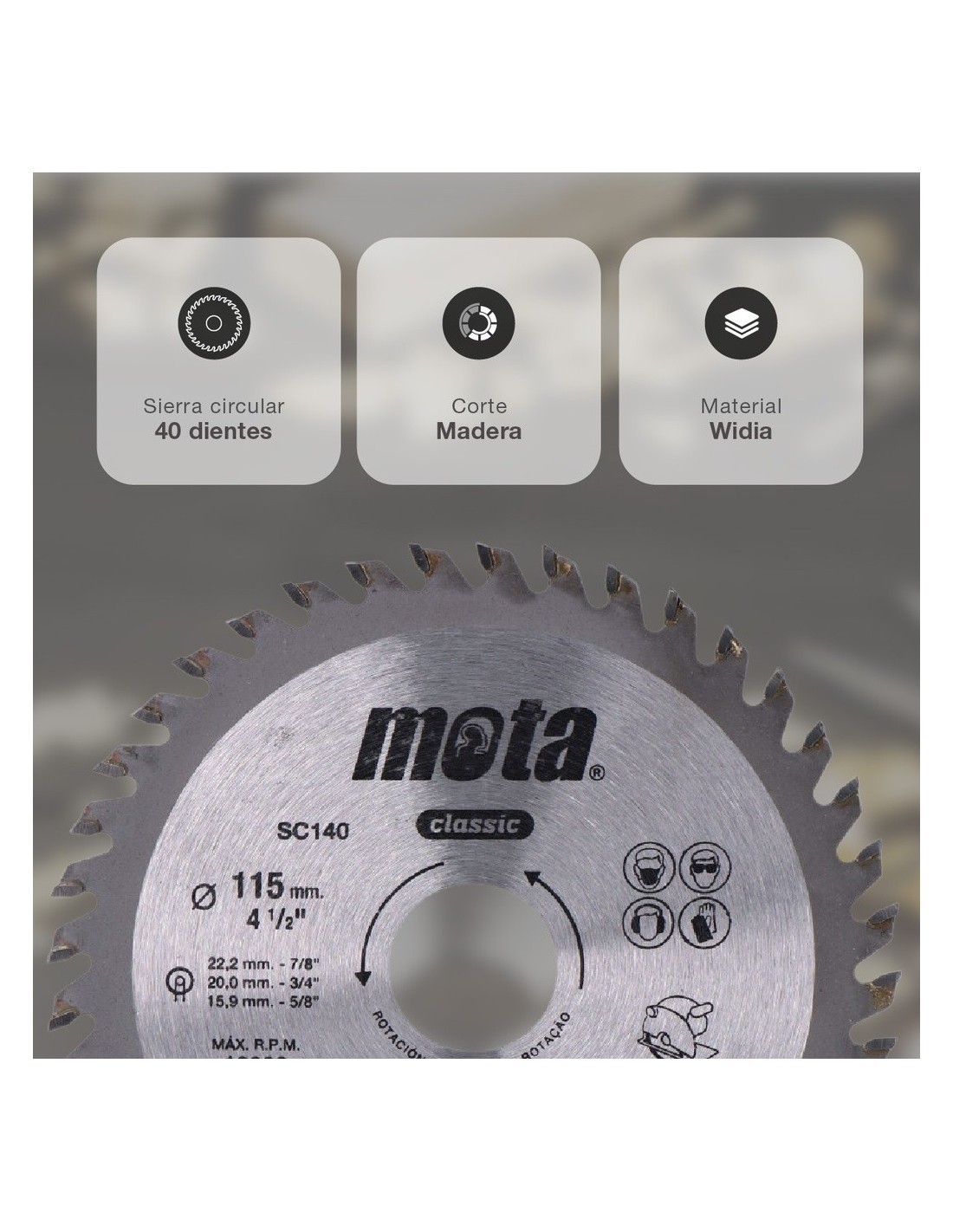 | Ideal para | Corte de madera y el uso de las de 30 y 48 dientes es para máquinas de pie y banco |