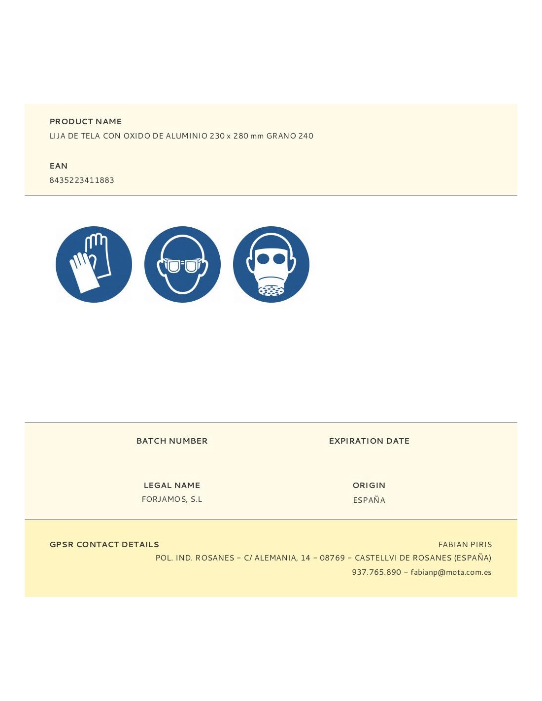 Papel de lija de oxido de aluminio 230 x 280 mm grano 180
