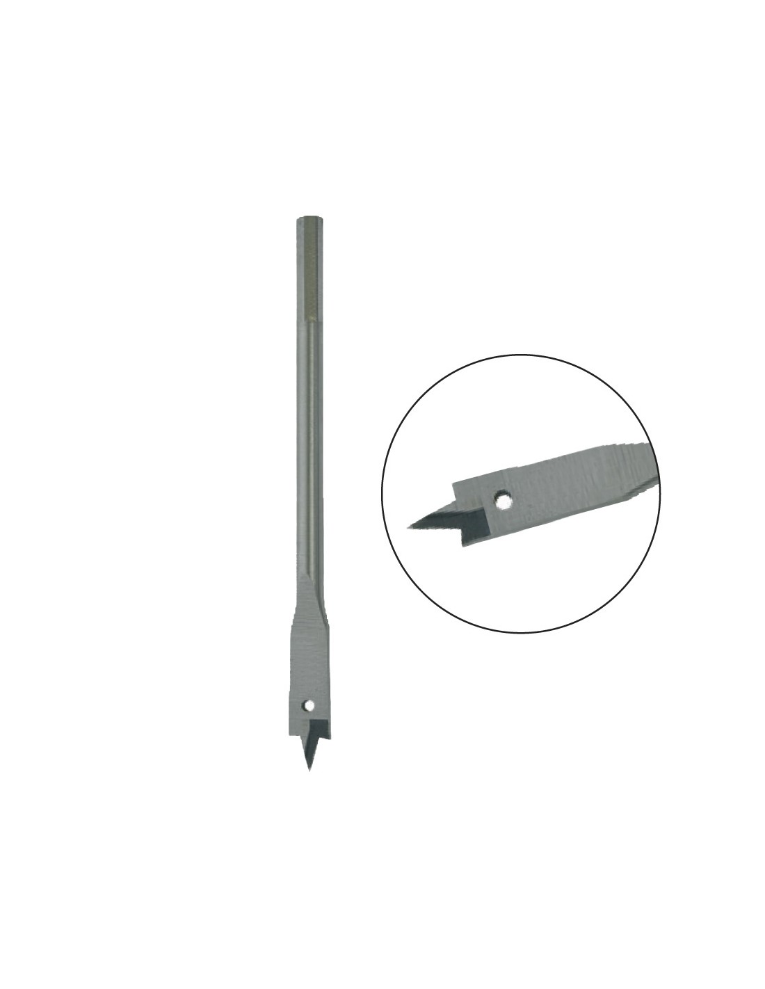 Broca pala para madera ø12,00 mm, punta de centrado muy afilada, ofrece robustez y es muy resistente a roturas, rodillo forjado segun din 7487, punta especial con dos filos para una perforacion limpia y sin abrasion, ideal para madera, materiales huecos y plastico