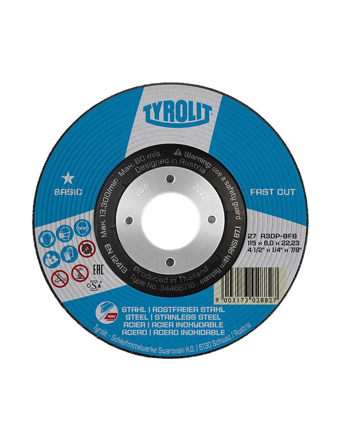 Disco desbaste 27c ø115 x 6 x 22,23 mm, para acero y acero inox, arranque rápido