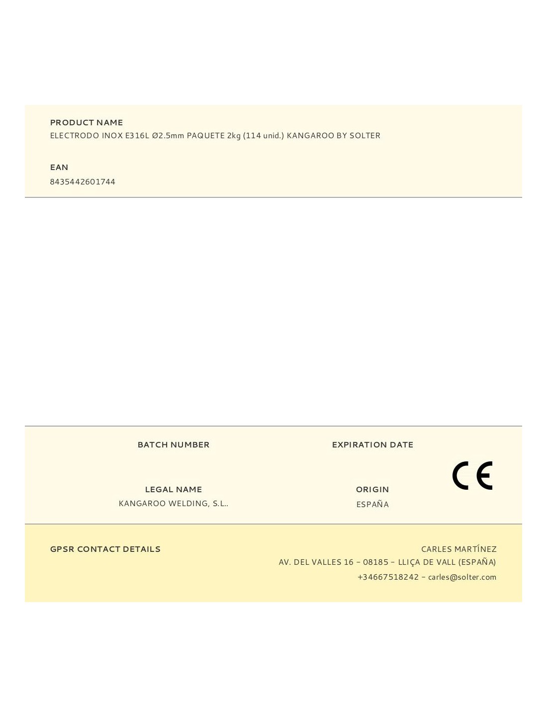 Electrodo inox e316l ø2.5mm paquete 2kg (114 unid.) kangaroo by solter