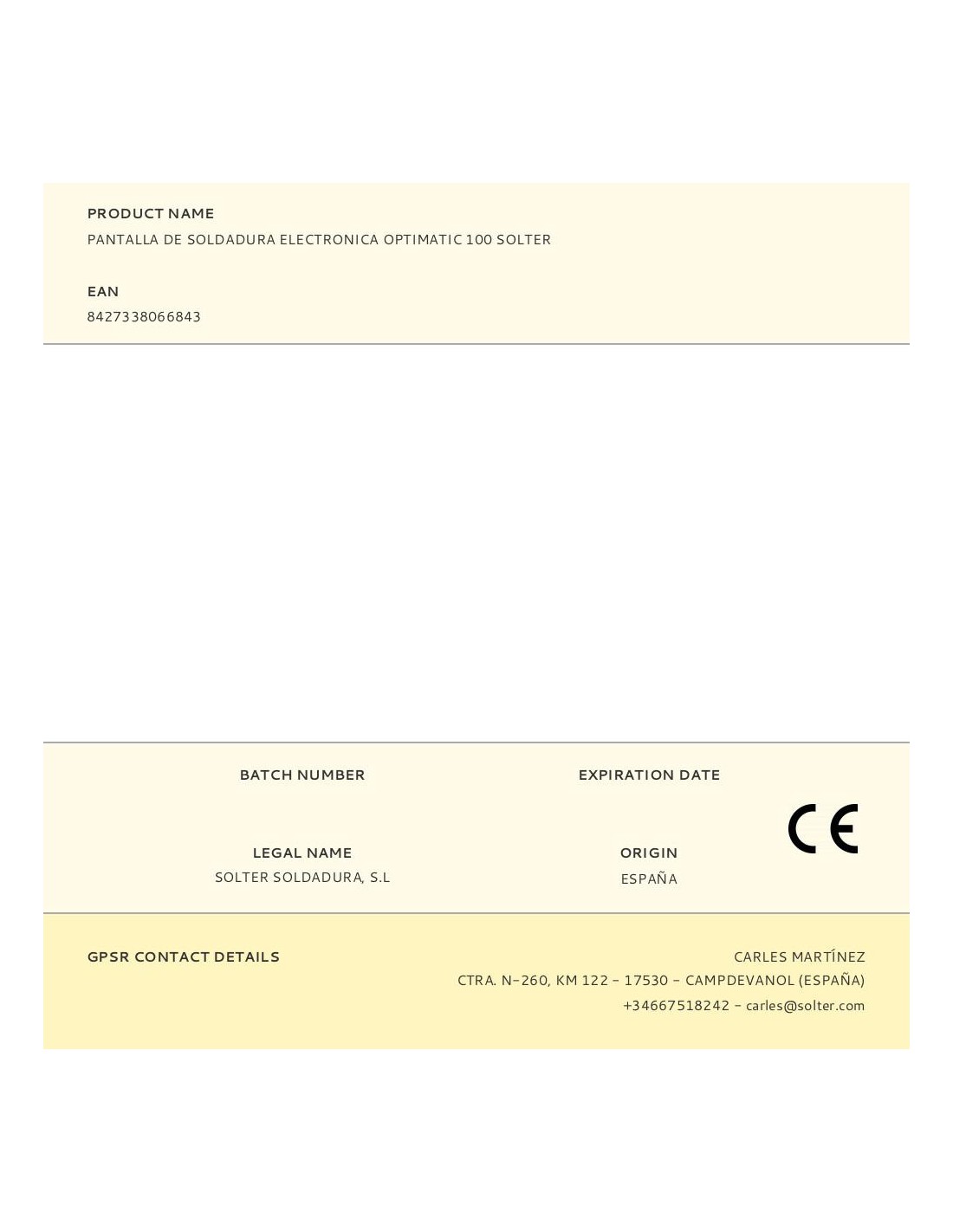 Pantalla de soldadura electronica optimatic 100 solter. optimatic es una pantalla de soldadura electrónica de oscurecido totalmente automático. gracias a sus multiples posibilidades de regulación, se adapta perfectamente a todo tipo de aplicaciones y procesos de soldadura. pantalla de soldadura electrónica. 2 sensores. calidad óptica 1/1/1/2. regulable din 9-13, sensibilidad y retardo. pila reemplazable.