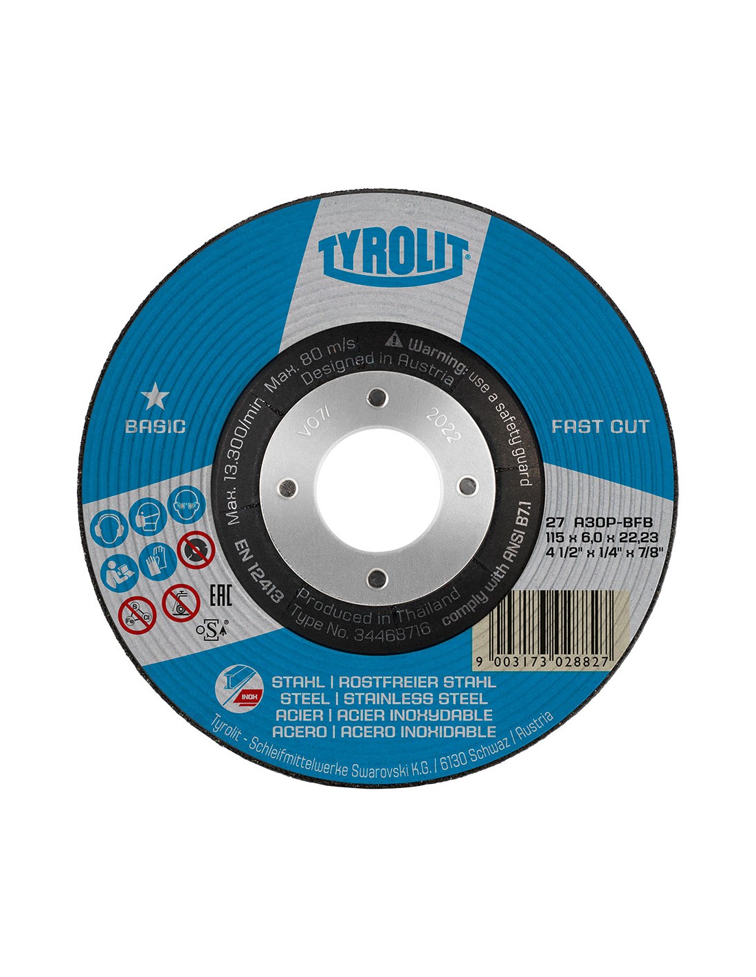 Disco desbaste 27c ø125 x 6 x 22,23 mm, para aplicaciones en acero y acero inox