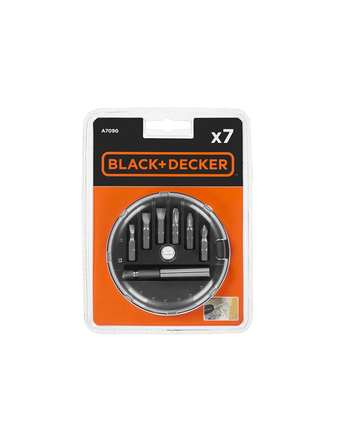 Conjunto 7 puntas para atornillar a7090-xj black+decker. con adaptador magnético. 3 puntas de 25mm. puntas phillips ph de 1 - 2 - 3mm y 3 puntas planas sl de 4 - 6 - 7.2mm.