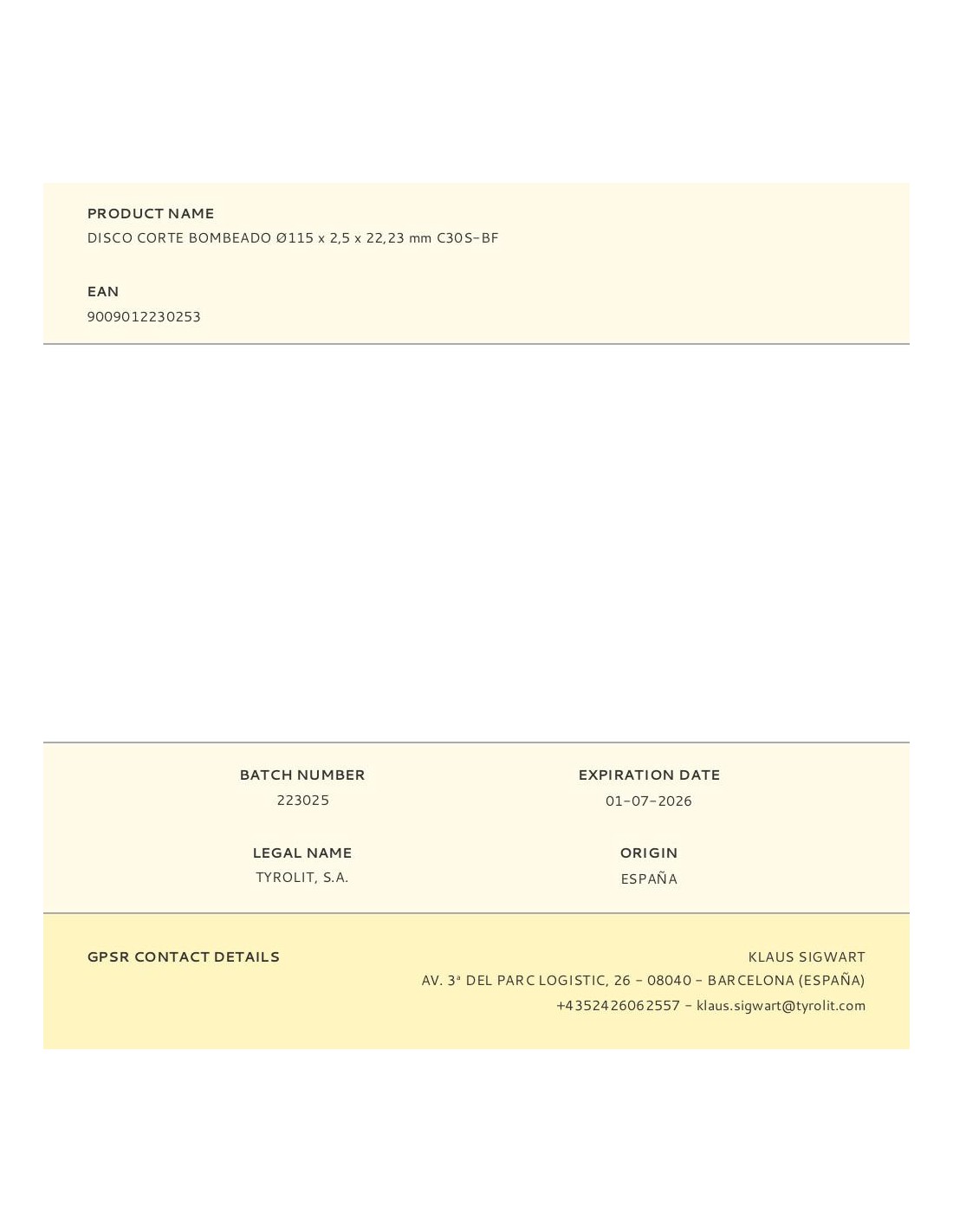 Disco corte bombeado ø115 x 2,5 x 22,23 mm c30s-bf. para piedra y materiales pétreos, buena capacidad de corte rápido y cómodo. duración y estabilidad