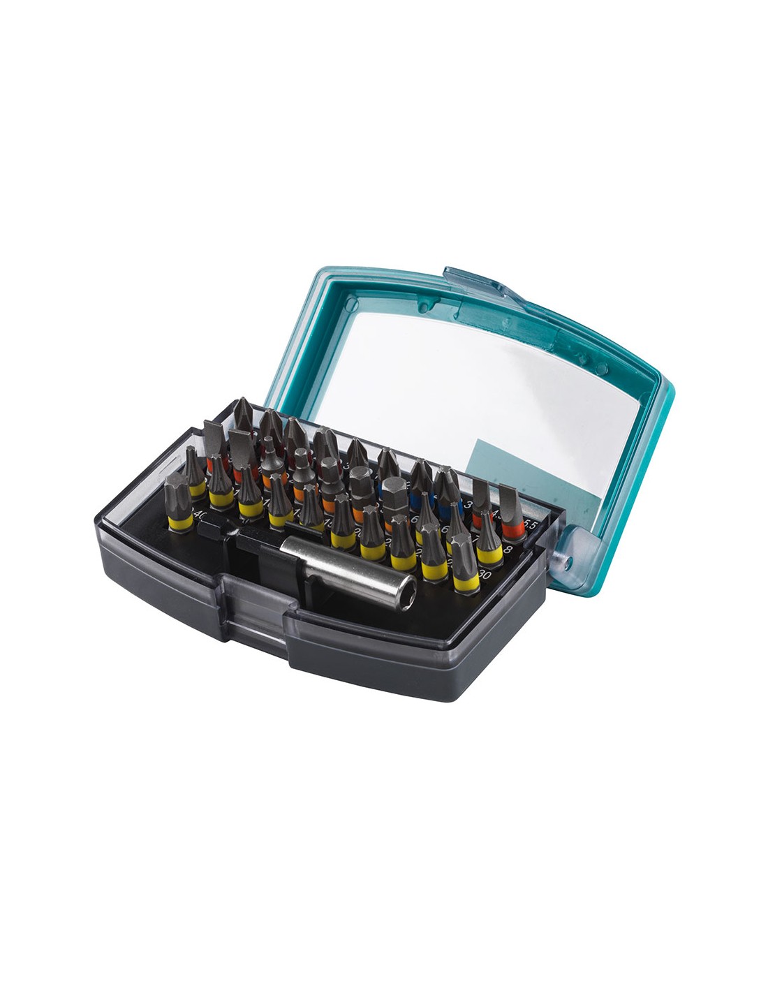Caja de puntas solid, con portapuntas magnético y 31 puntas ranura, phillips, pozidriv, hexagono interior, torx wolcraft