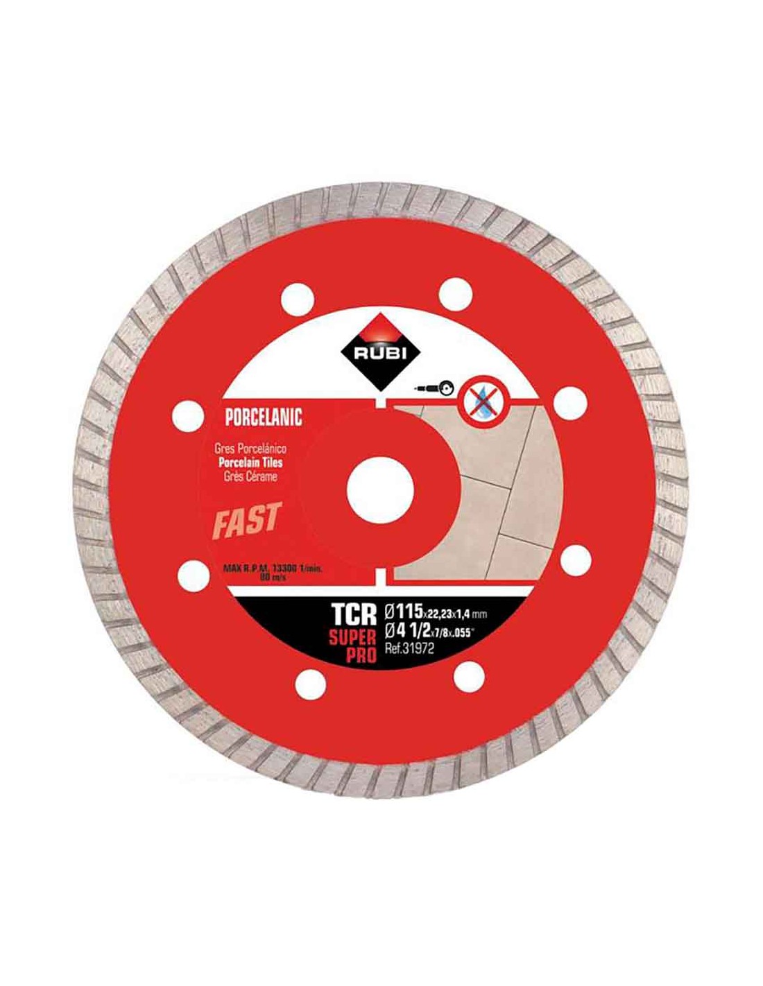Disco diamantado tcr ø115 mm superpro. corte fino en baldosas de gres porcelánico (tipo bia).perfectos para aquellos casos en los que es necesario un corte en gres porcelánico de alta calidad.soldadura láser, calidad y seguridad para el usuario