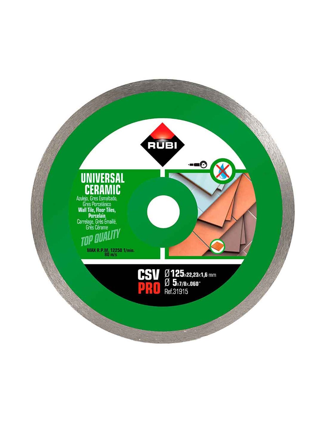 Disco diamantado csv ø125 mm pro. son la mejor opción para el corte, en seco y con amoladora, de todo tipo de baldosa cerámica. se adaptan, mejor que ningún otro disco, a aquellas situaciones en las que el colocador profesional de baldosa cerámica tiene que trabajar con baldosas cerámicas de distintas naturalezas. reduce los tiempos muertos generados por la necesidad de cambiar de disco cada vez que cambiamos de material