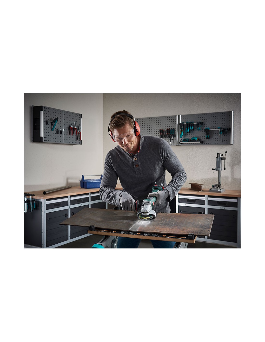 Disco de láminas abrasivo para el rectificado basto de superficies metálicas diámetro de trabajo: ø115 mm alojamiento del agujero: 22,23 grano: 40 velocidad máx. de rotación: 13.300 rpm larga duración, muy superior a los discos de láminas abrasivos convencionales alojamiento de 22,2 mm, apto para todas las amoladoras de ángulo certificado según en 13743