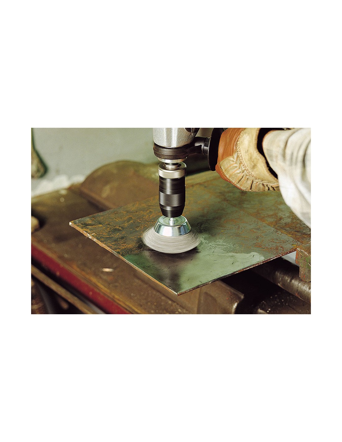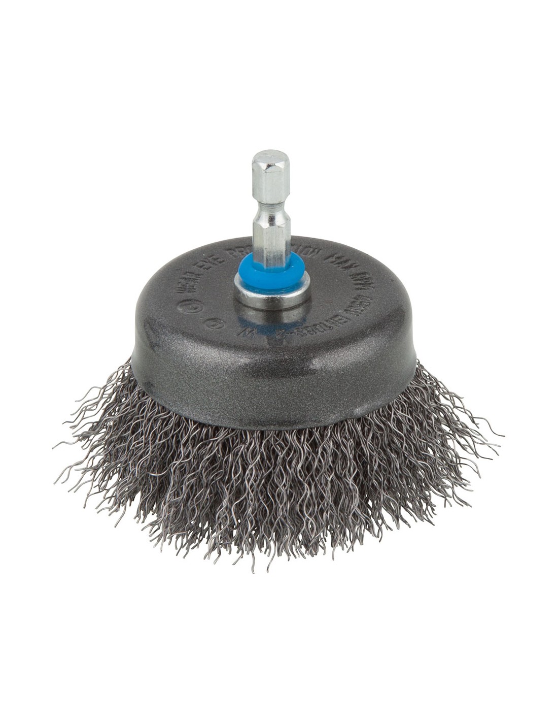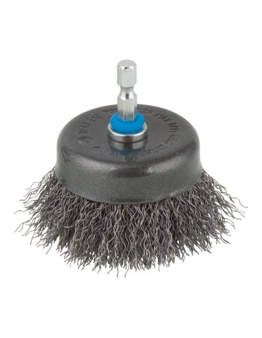 Cepillo de copa de alambre de acero diámetro de trabajo: ø75 mm longitud del alambre: 25 mm versión de vástago: vástago hexagonal de 6,35 mm, 1/4 dimensiones: 75 x 75 x 65mm