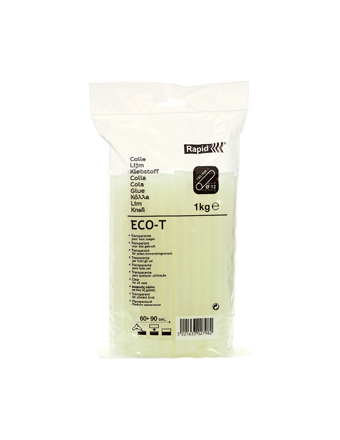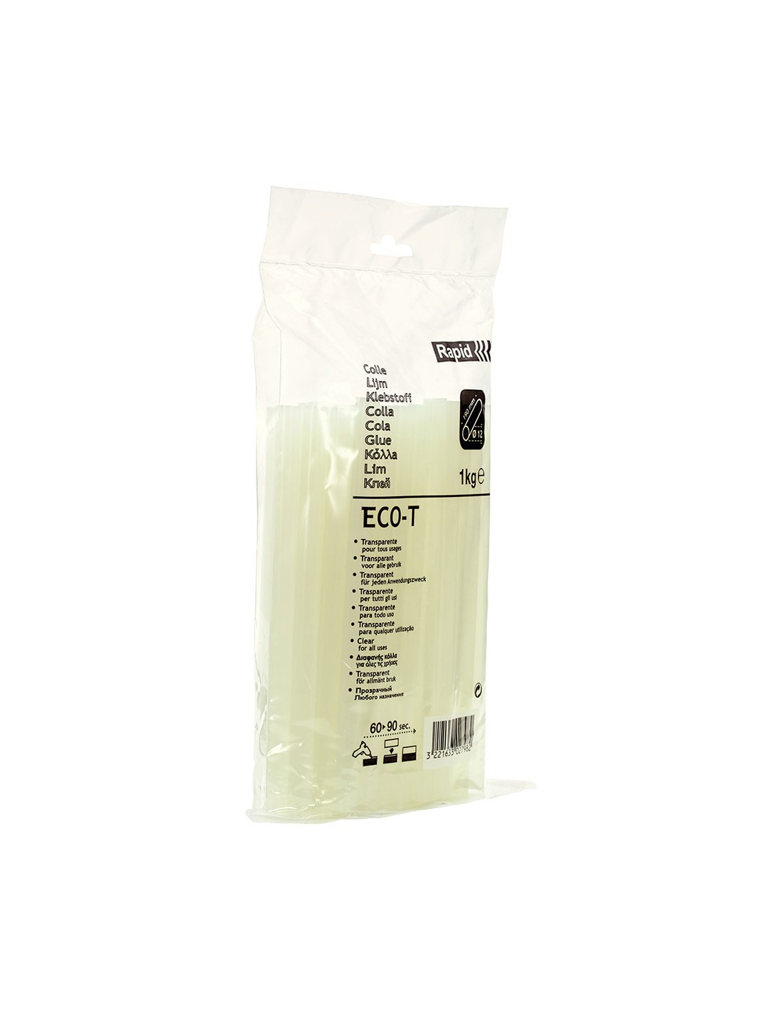 Barra de cola termofusible eco t, transparente, para uso universal, temperatura de aplicación 160 - 200 c. ø12 x 190 mm, 1 kg
