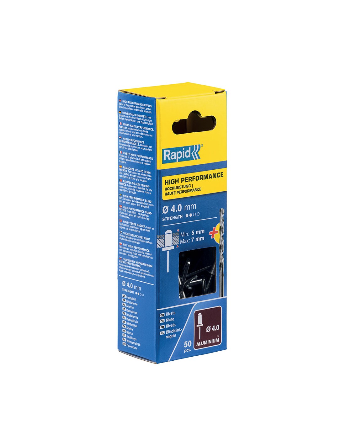 Blister 50 remaches ø4x10mm alu+broca 5001459 rapid. estos remaches de aluminio de alto rendimiento son perfectos para fijar materiales que se encuentren en lugares expuestos, como guardabarros, revestimientos de metal y plástico, señalizaciones y placas metálicas. en el embalaje se incluye una broca del tamaño adecuado.