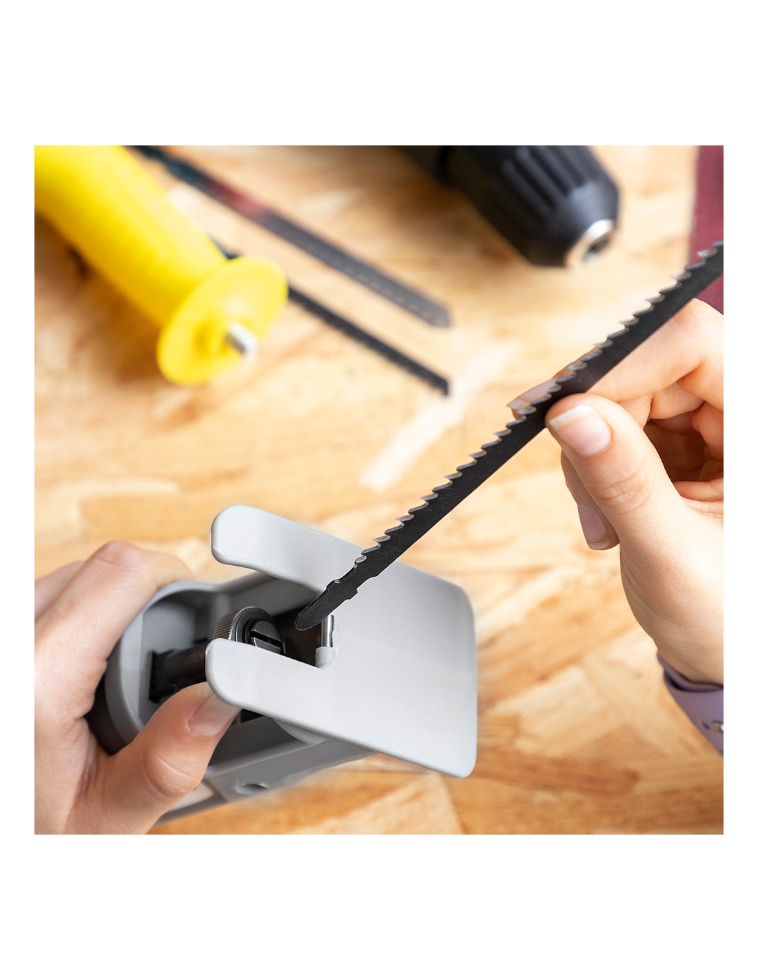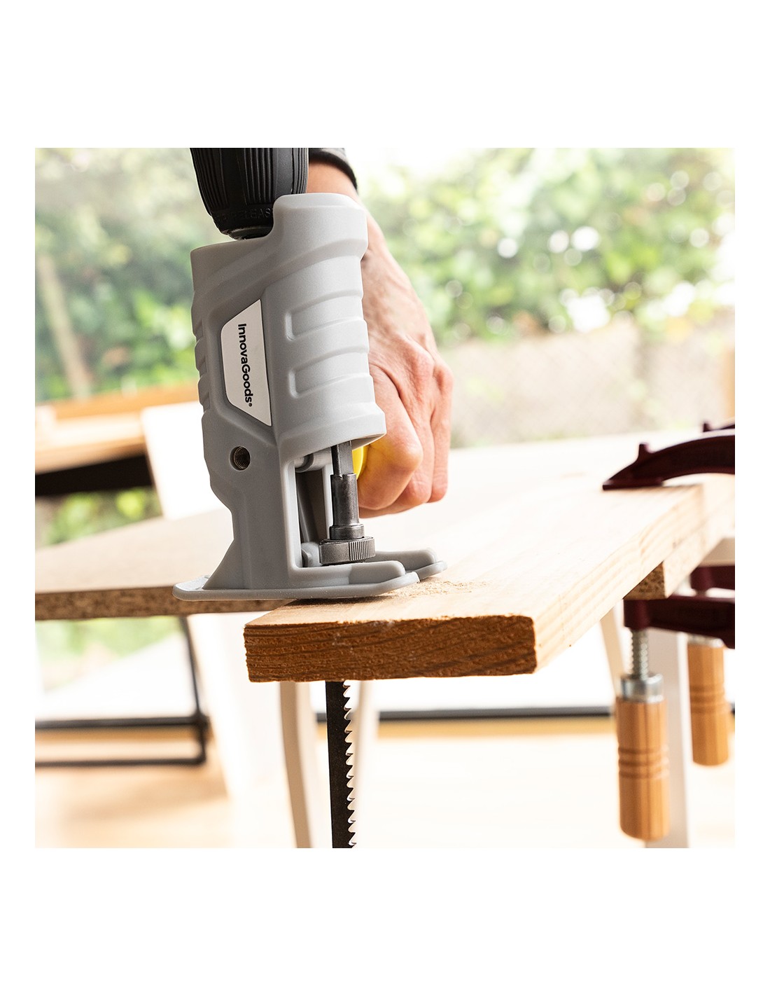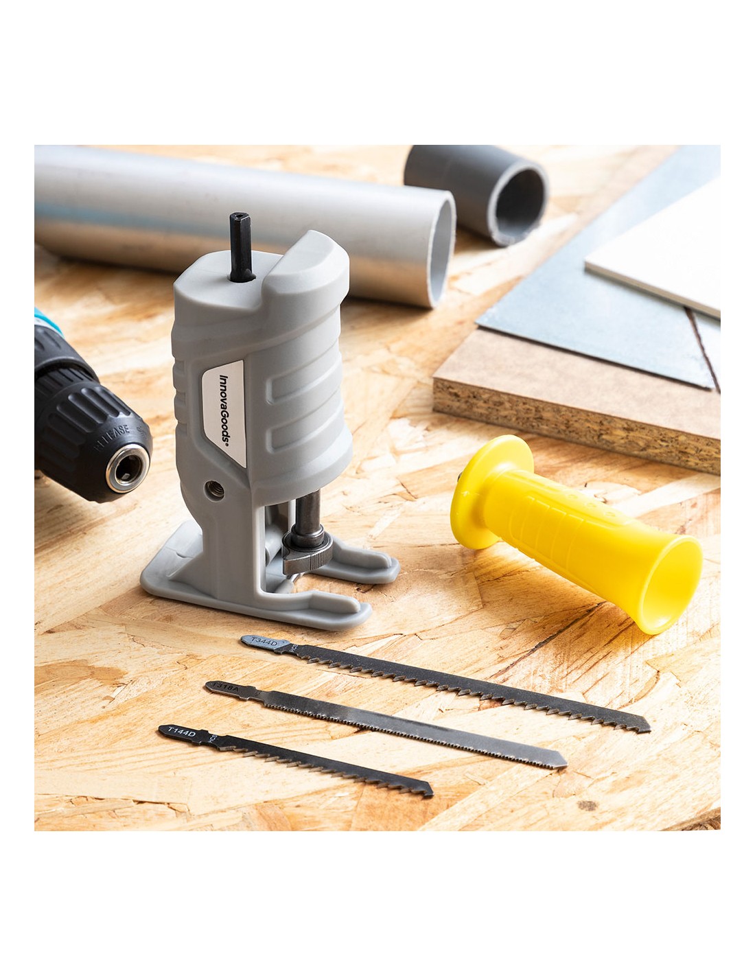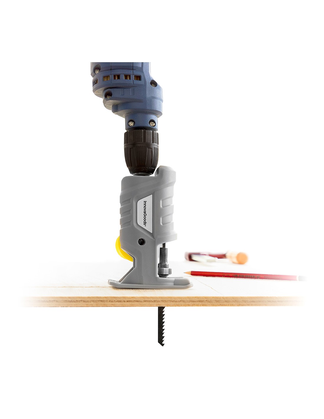 Adaptador de sierra de calar para taladro jrill innovagoods el adaptador de sierra de calar para taladro jrill innovagoods es muy práctico para realizar multitud de trabajos de bricolaje, ya que permite convertir un taladro en una sierra de calar muy fácilmente. una forma sencilla de darle mayor uso y utilidad a otras herramientas eléctricas. además, incluye un mango extraíble multiposición y varias hojas de sierra intercambiables válidas para utilizar en diferentes tipos de superficies.