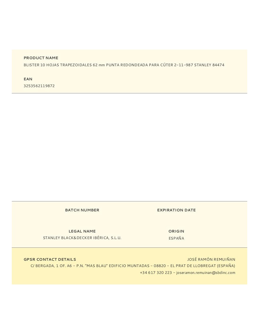 Blister 10 hojas trapezoidales 62mm punta redondeada para cúter stanley 84474