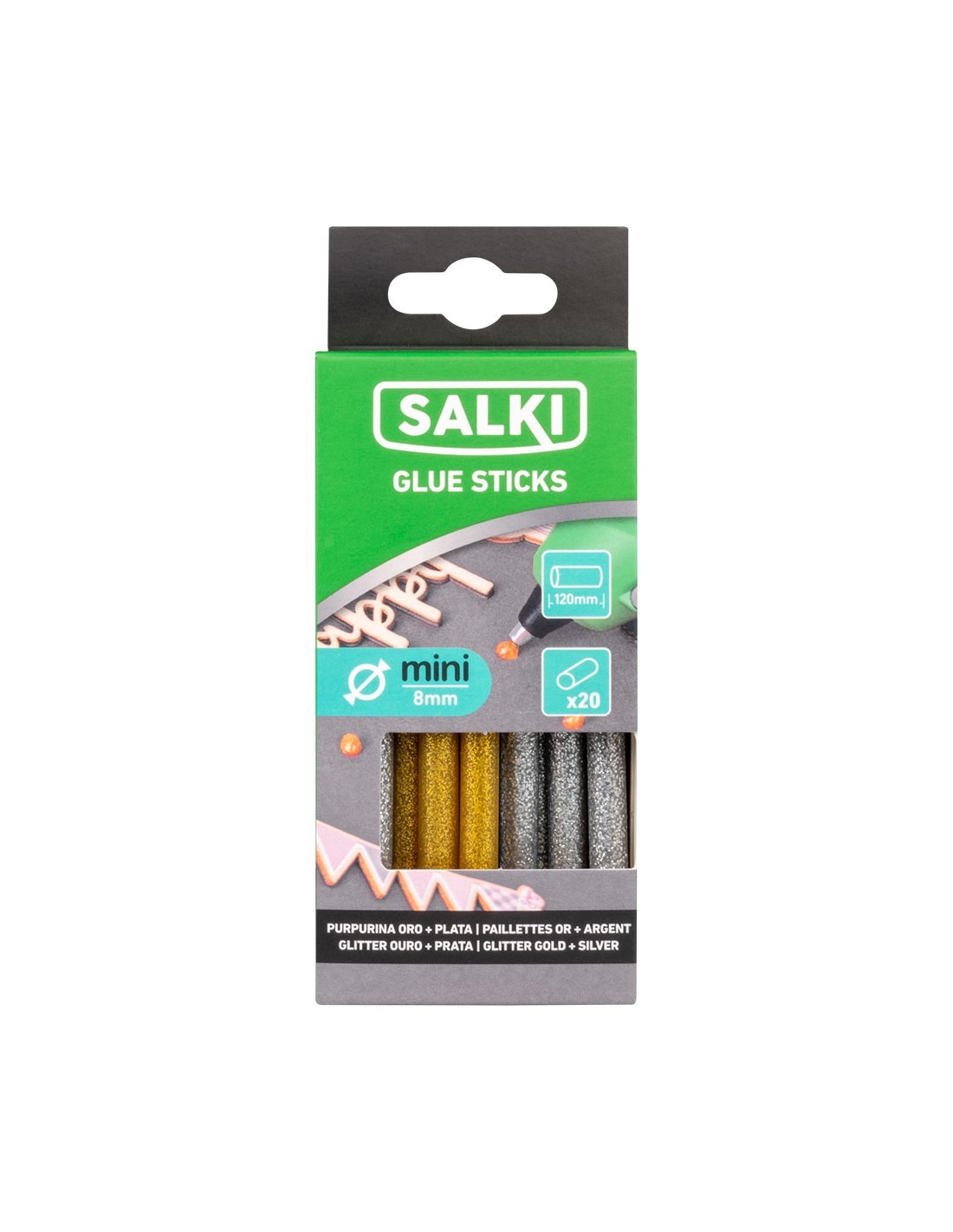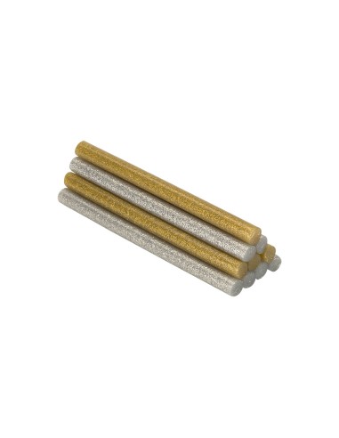 Barra de cola termofusible perfectas para manualidades y decoración, purpurina dorado + plateado. ø8 x 120 mm, blister 20 uds