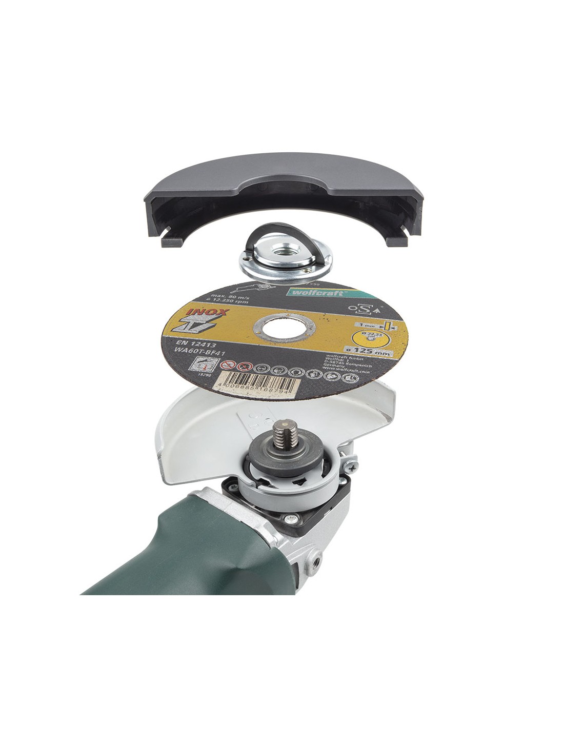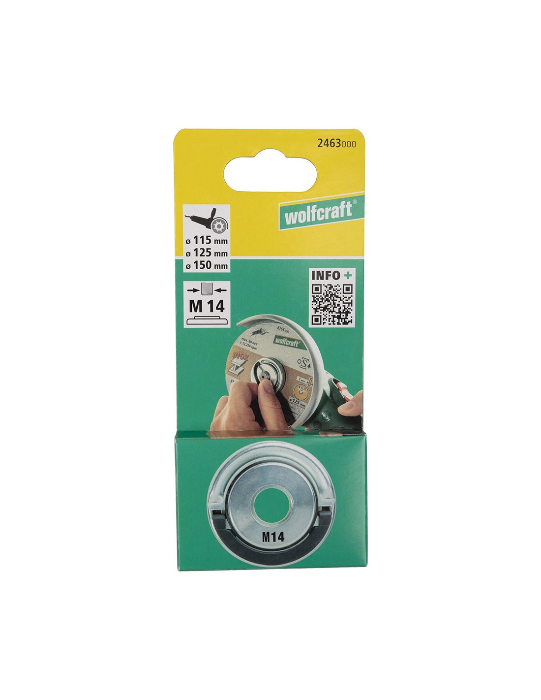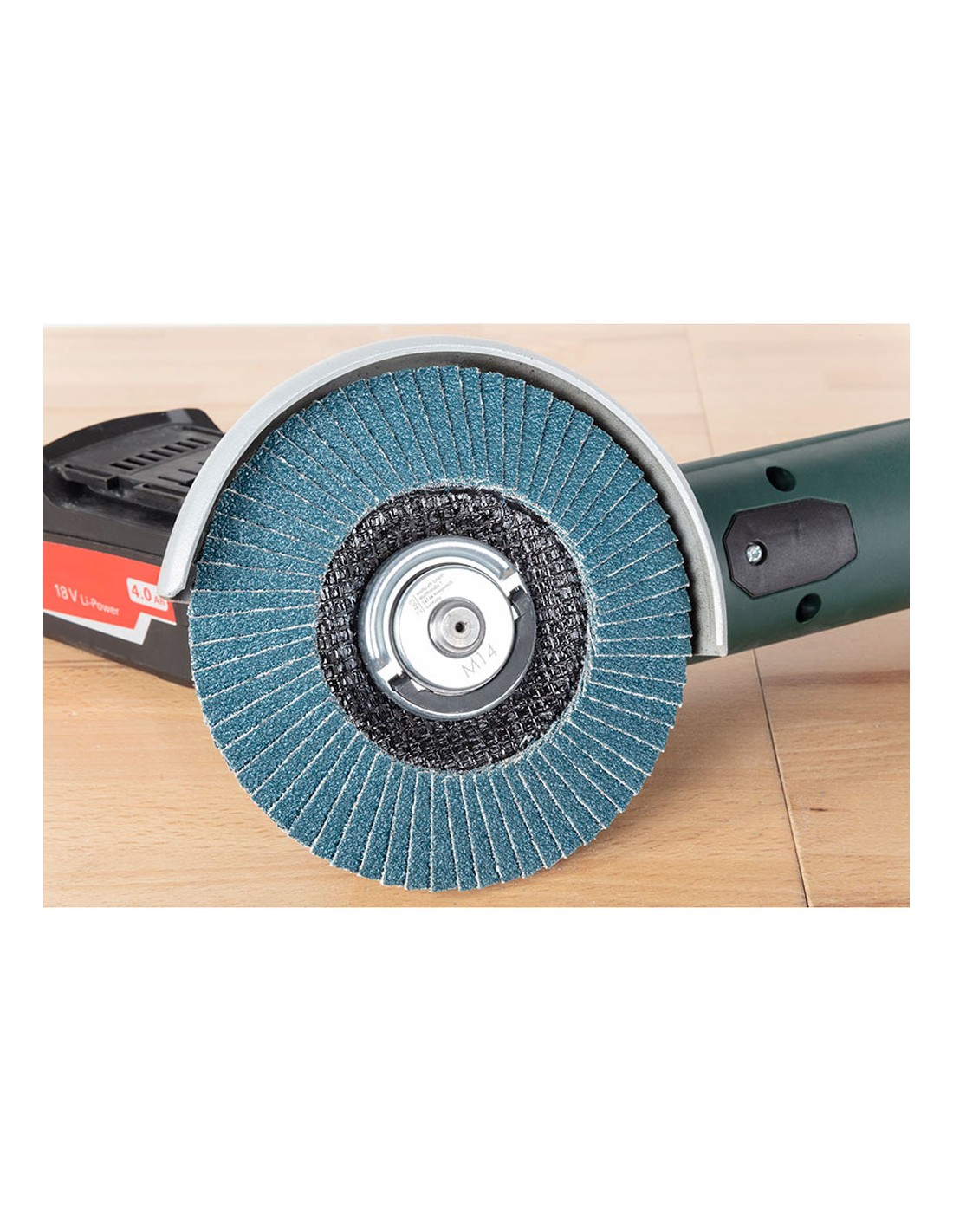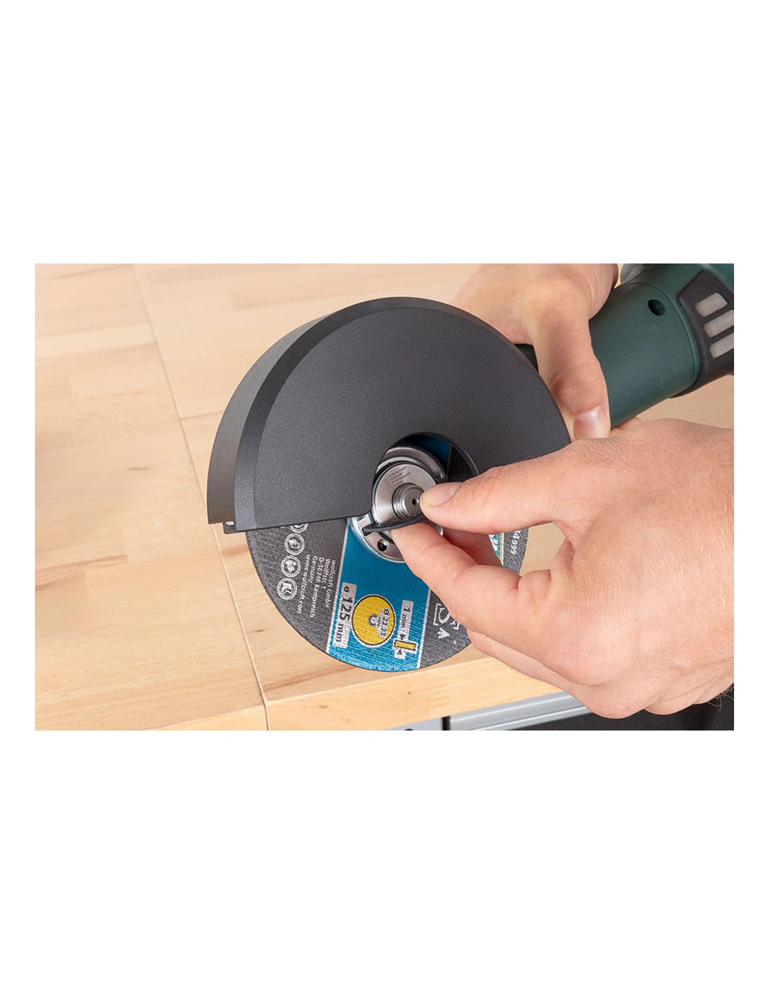 La tuerca de fijación rápida permite cambiar, rápidamente y sin herramientas, discos de corte, desbastado y lijado con un diámetro de hasta 125 mm. dispone de una palanca abatible que queda encajada de forma segura en la posición de 0° y de 90°. con un movimiento giratorio manual hacia la izquierda o la derecha se suelta y fija la tuerca de amoladora con rapidez y comodidad. en caso necesario, esto también puede realizarse con una llave de amoladora. también están disponibles las sujeciones correspondientes. gracias a la rosca m14, la tuerca de fijación rápida es compatible con amoladoras angulares disponibles en el mercado.