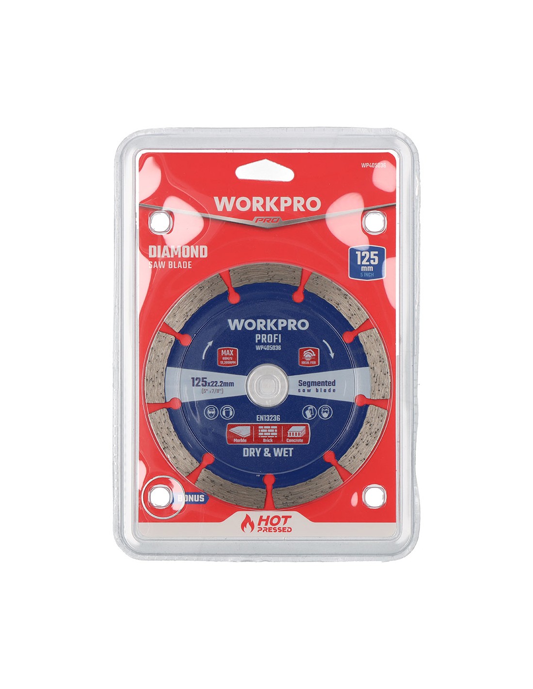 Disco diamantado segmentado profi ø125 x 22,2 mm para corte de piedra, hormigón, ladrillo y teja. dientes prensados en frío, cuerpo de acero 65mn. corte seco o húmedo