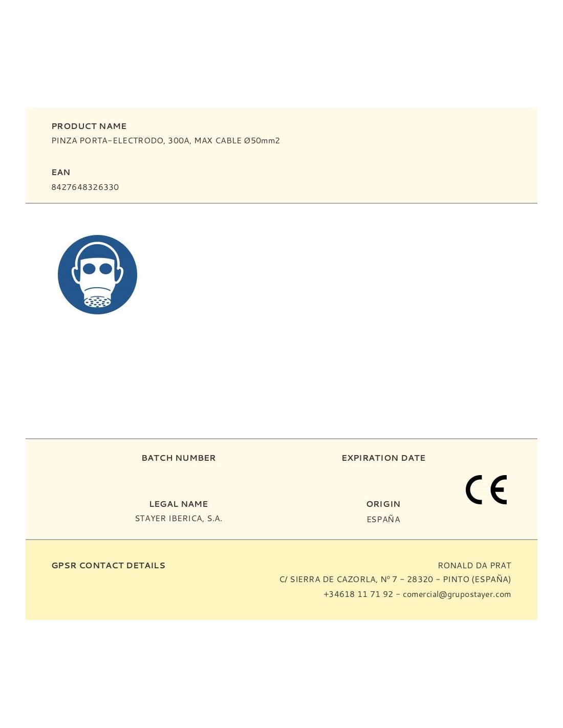 Pinza porta-electrodo, 300a, max cable ø50mm2