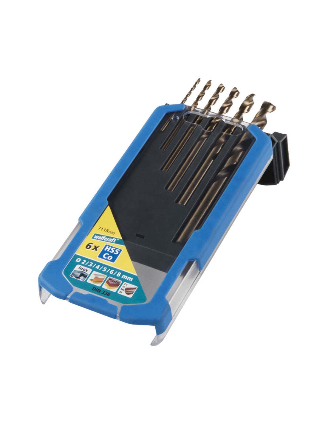 Juego de 6 brocas para metal high speed steel con cobalto, rectificadas diámetros de las brocasø2, 3, 4, 5, 6 y 8 mm. para taladrar materiales especialmente duros y resistentes, como el acero inoxidable