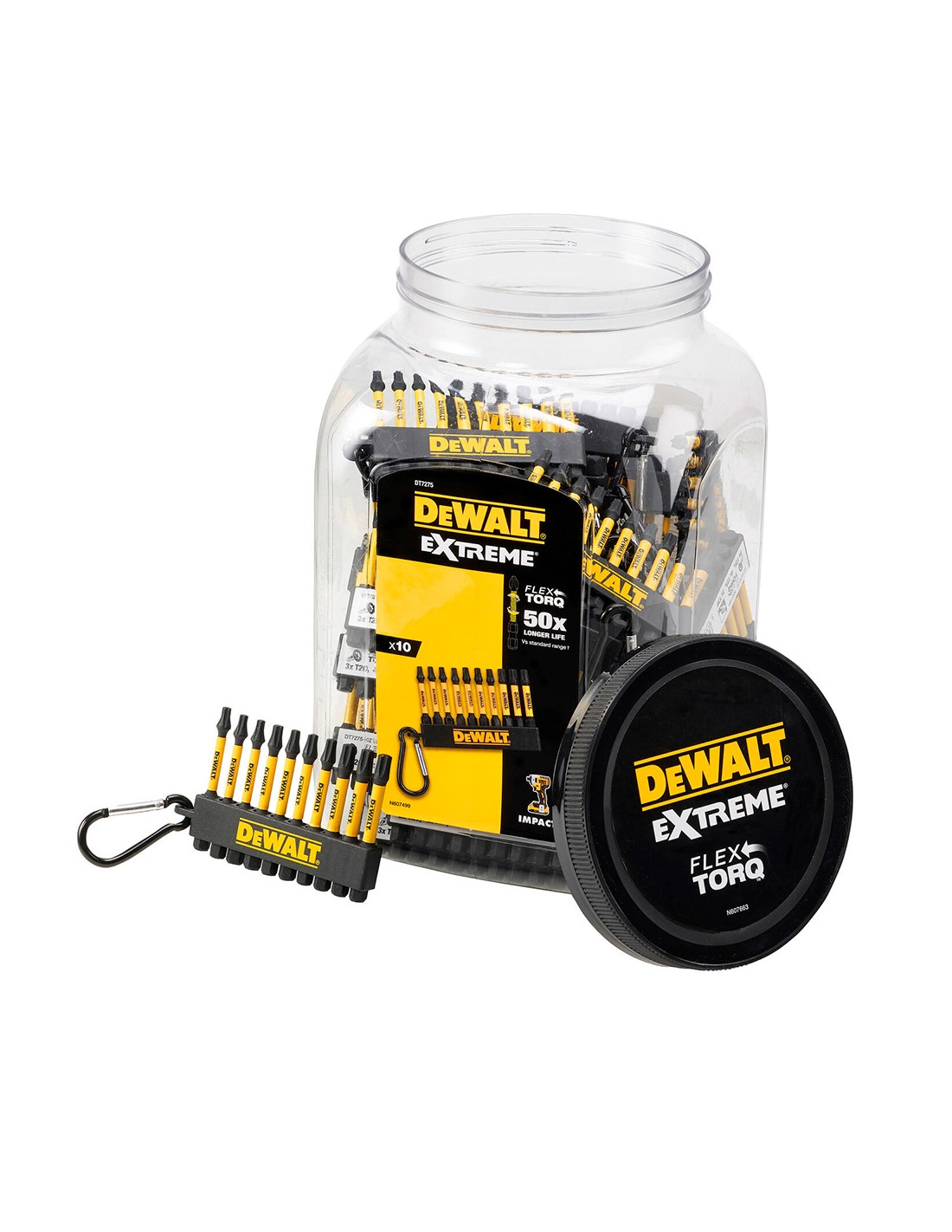 Juego de 10 puntas flextorq 57 mm, 6 x pz2, 2 x pz3 y 2 x ph2 con mosquetón, bote con 50 uds