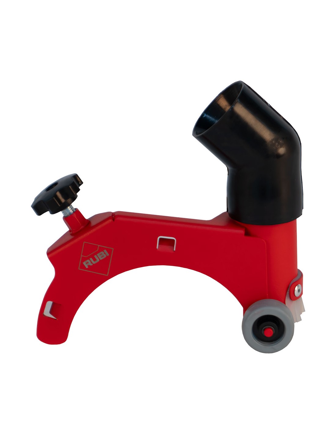 El cut master guide de rubi está diseñado para aumentar la estabilidad y comodidad al cortar. mejora la calidad del corte y el rendimiento del disco incorpora una conexión al aspirador de ø35 mm que elimina completamente el polvo de la zona de corte. el sello de silicona no permite fugas de polvo. es compatible con todos los modelos de amoladora angular de ø115, ø125 mm. para utilizar el cut master guide no es necesario quitar el protector del disco original. con las ruedas de ø30 mm que incorpora, es mucho más fácil guiar el disco en línea recta, ya que sostienen el peso de la amoladora angular al cortar además, no dejarán marca en la baldosa