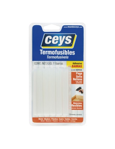 Adhesivo en barras translúcido, pega, sella y rellena. para materiales flexibles, contiene 11 uds. largo 90 mm, ø11 mm, para pistola termoencoladora t-60