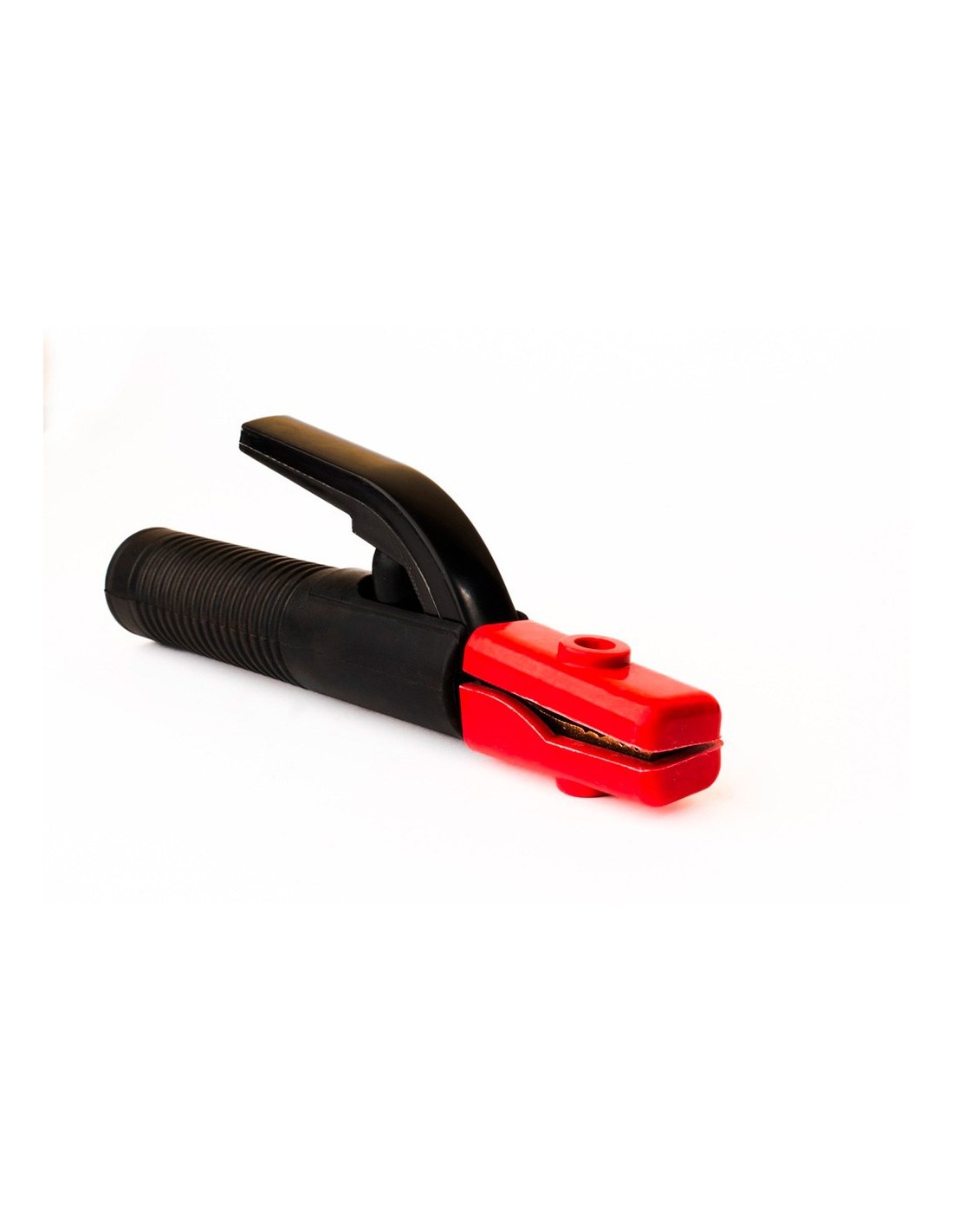 Pinza portaelectrodo 300a. asegura una transmisión de corriente óptima para soldadura mma en 300a. diseño de mordaza abierta con resorte que garantiza una sujeción mecánica firme y multiposicional de electrodo. fabricada con materiales de alta conductividad y carcasa termoestable aislante