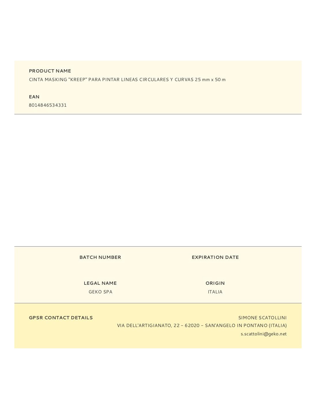 Cinta masking "kreep" para pintar lineas circulares y curvas 25 mm x 50 m