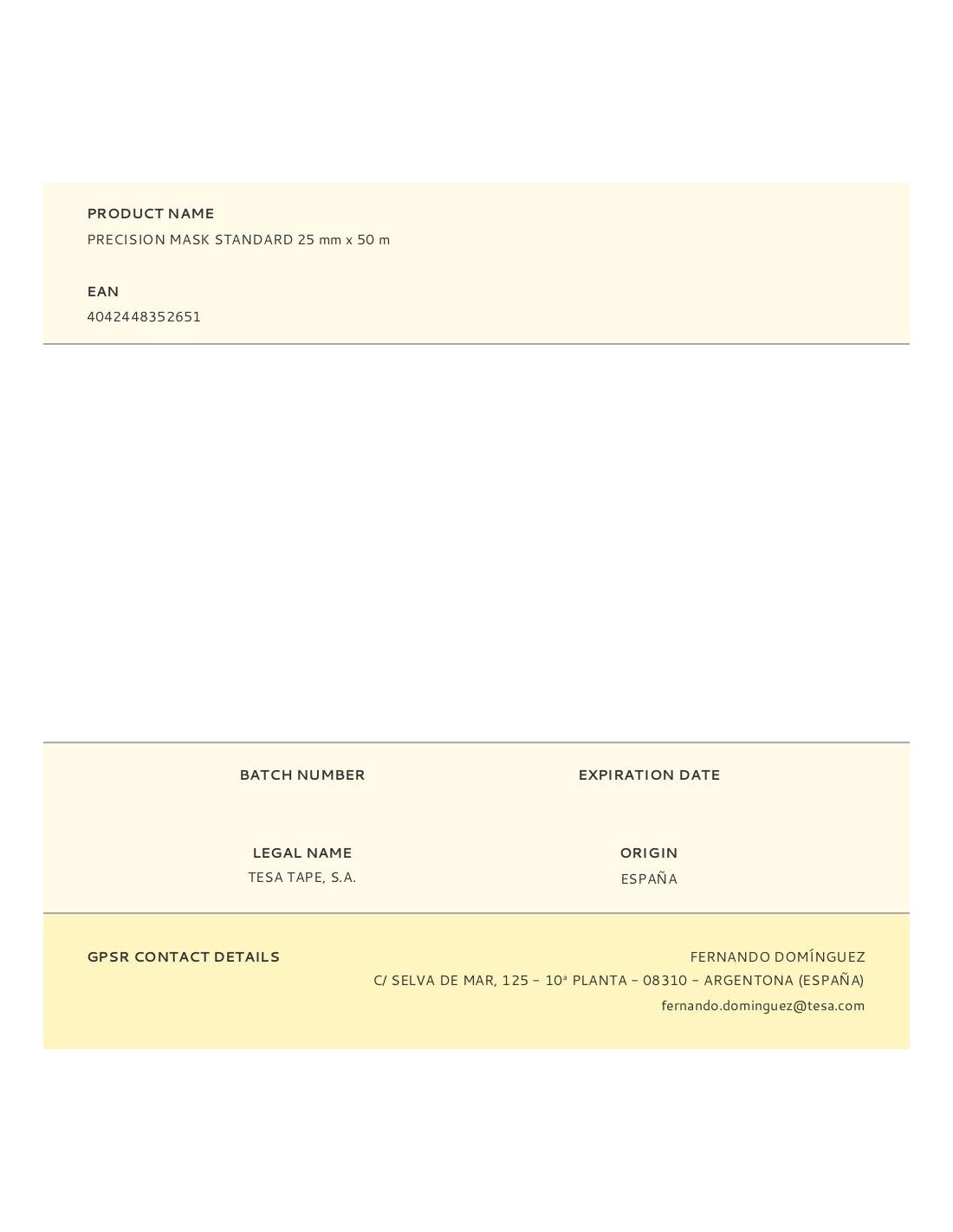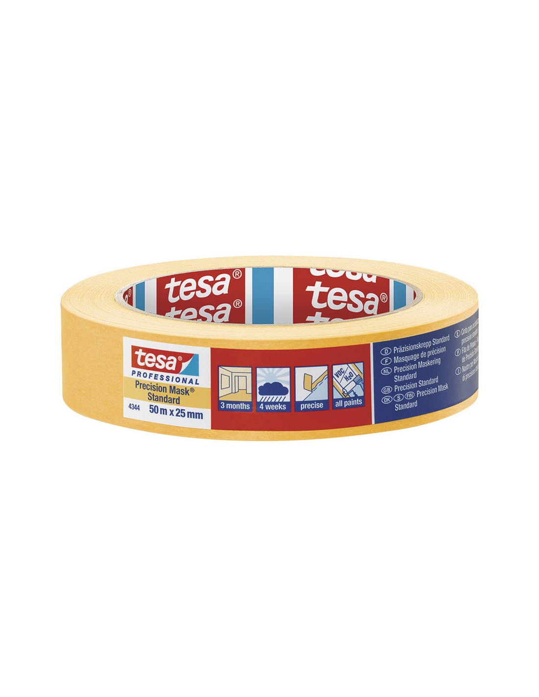 Precision mask standard 25 mm x 50 m. compuesta de un soporte de papel extrafino pero a su vez muy resistente y con un adhesivo acrílico