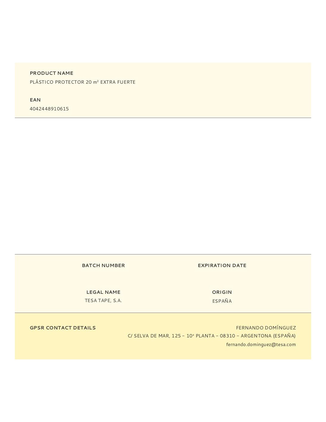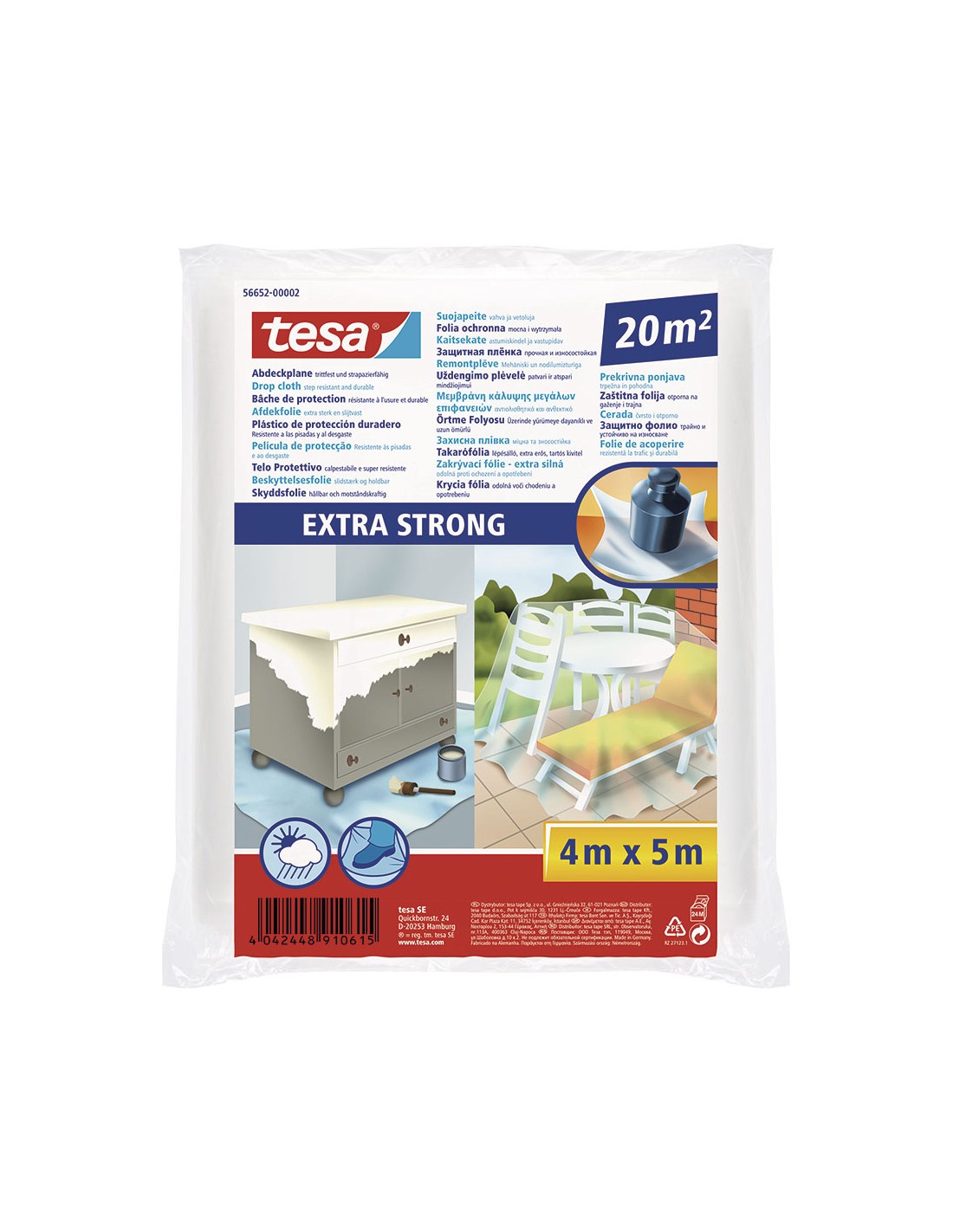 Plástico protector 20 m extra fuerte.tamaño de 4 x 5 m. impermeable y duradero para la protección de grandes superficies en interior y exterior. uso profesional