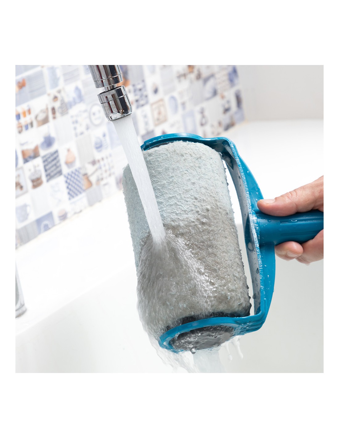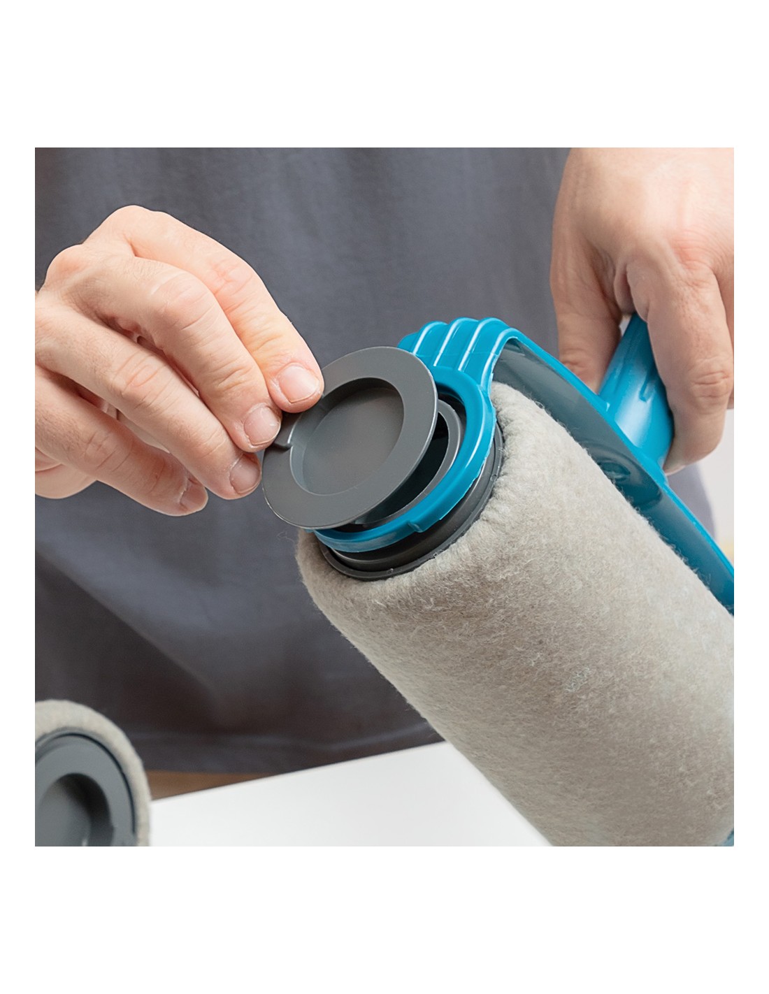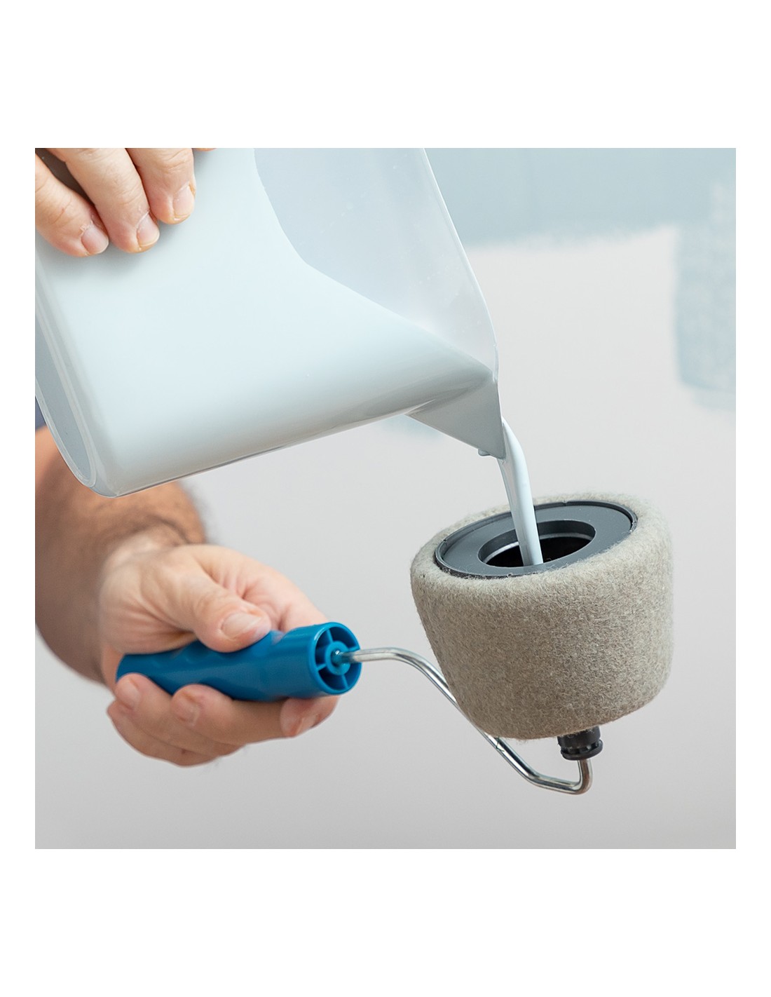 Set de rodillos de pintura recargables de pintura con gran capacidad de cobertura que minimizan el tiempo y esfuerzo que supone pintar y evitan derrames y goteos. fabricado en pp, poliéster y aluminio. pinta hasta 25 m aprox con cada carga de pintura. incluye: rodillo de pared con tapa de seguridad 16 x 9 cm, rodillo de precisión con tapa de seguridad 7 x 9 cm, cepillo para esquinas 8 x 20 cm, jarra de llenado de 1 l. y barra de extensión 75 cm