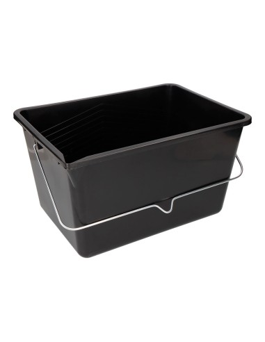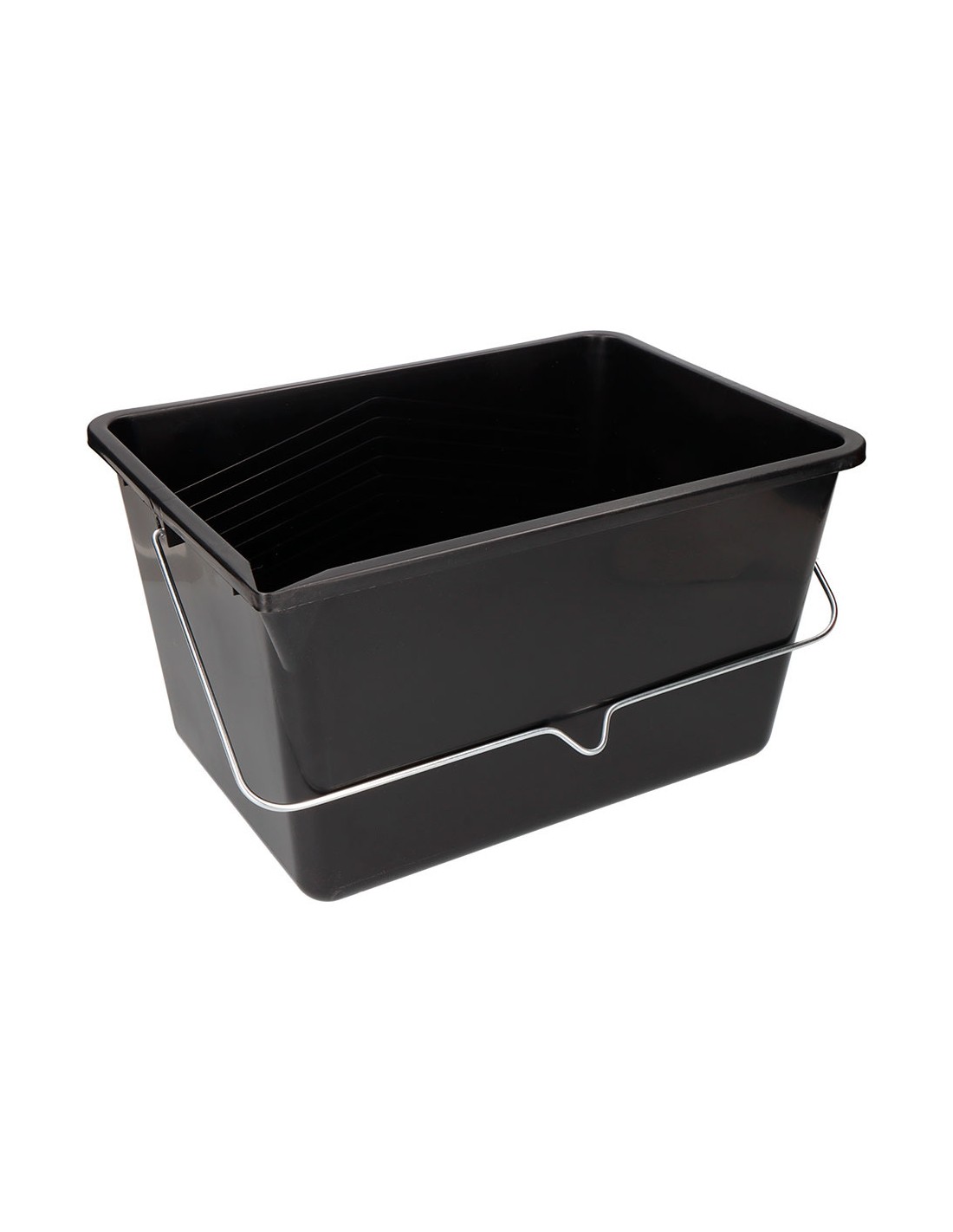 Cubeta de plástico resistente con lateral vertedor y superficie lateral estriada para facilitar la descarga correcta de pintura del rodillo. para todo tipo de pintura. cuenta con escala volumétrica en litros en su interior. capacidad para 12 litros de pintura y apta para trabajar con rodillos hasta 25 cm. con asa resistente. dimensiones 353 x 250 x 205 mm