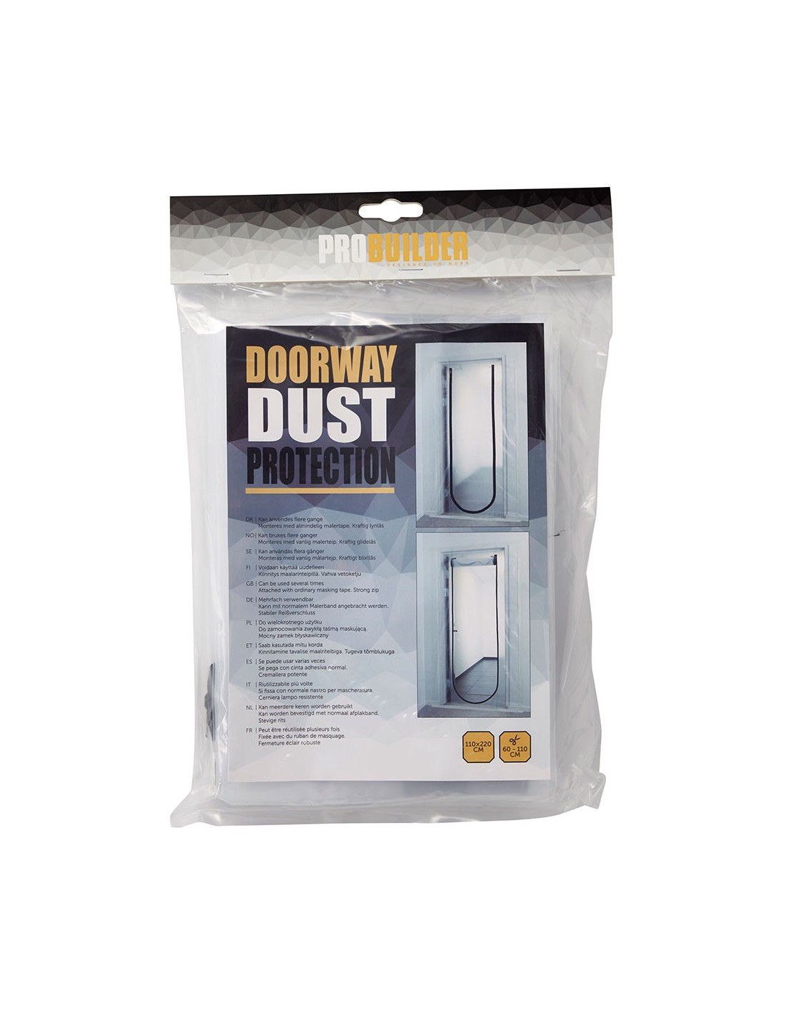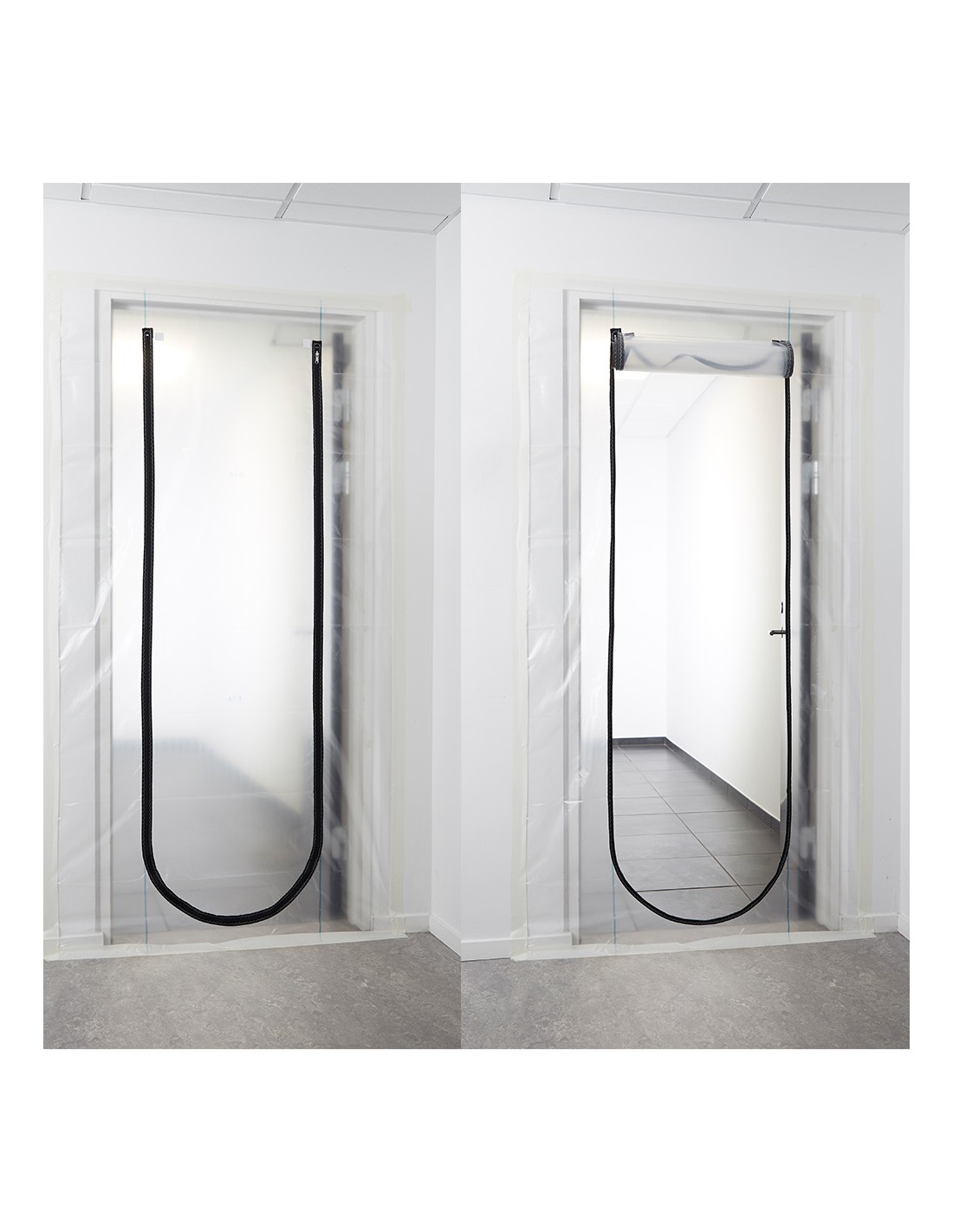 Barrera polvo y olores para puerta, 220 x 110 cm, con cremallera resistente, se fija con cinta adhesiva normal, fácil de instalar y plegable material polietileno, tamaño para puertas de 60 a 110 cm de ancho