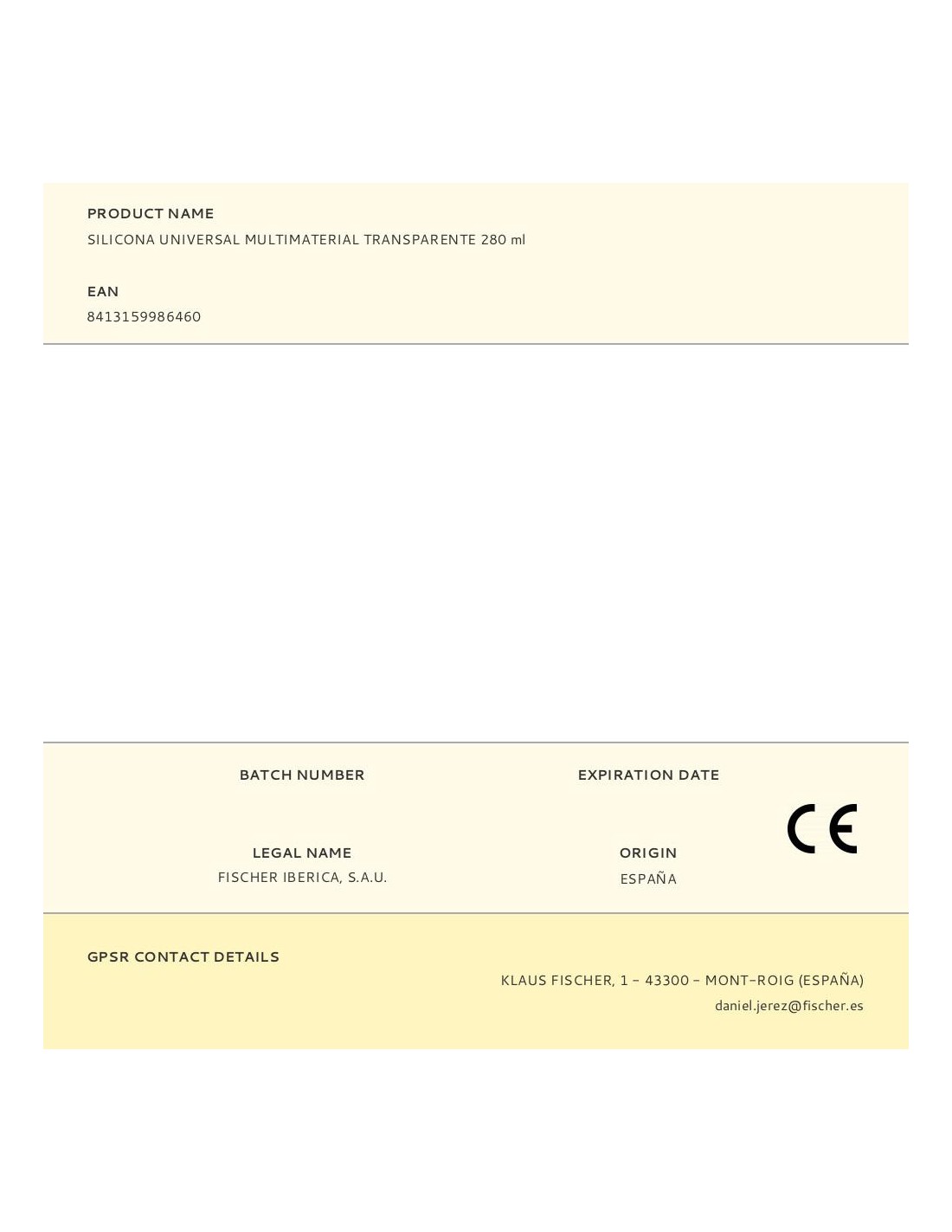 Silicona universal transparente fischer 280 ml con fungicida anti-moho y flexible