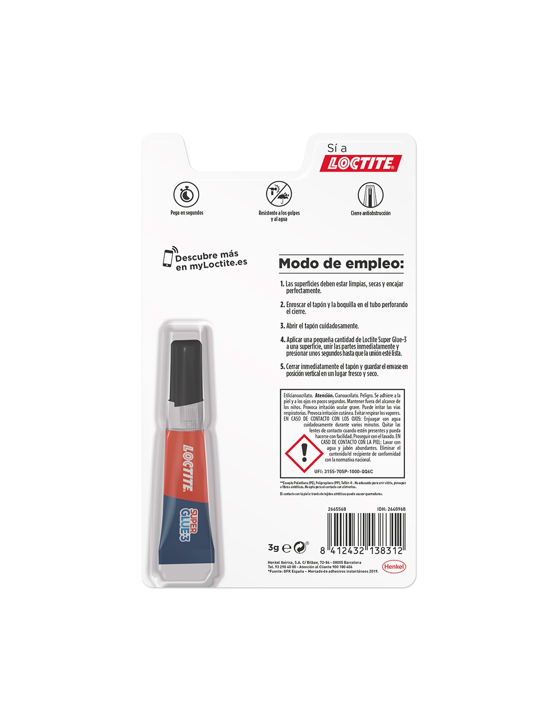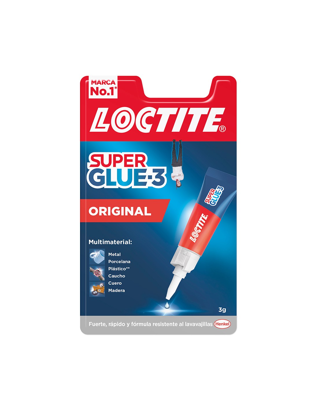 Super glue original 3 g, adhesivo universal instantaneo maxima fuerza union en pocos segundos nueva formula resitente al agua y al lavavajillas para pegar en pocos segundos todos los tipos de materiales: porcelana, madera, plastico, metal, goma, cuero, marmol