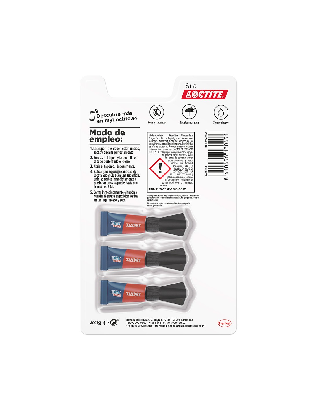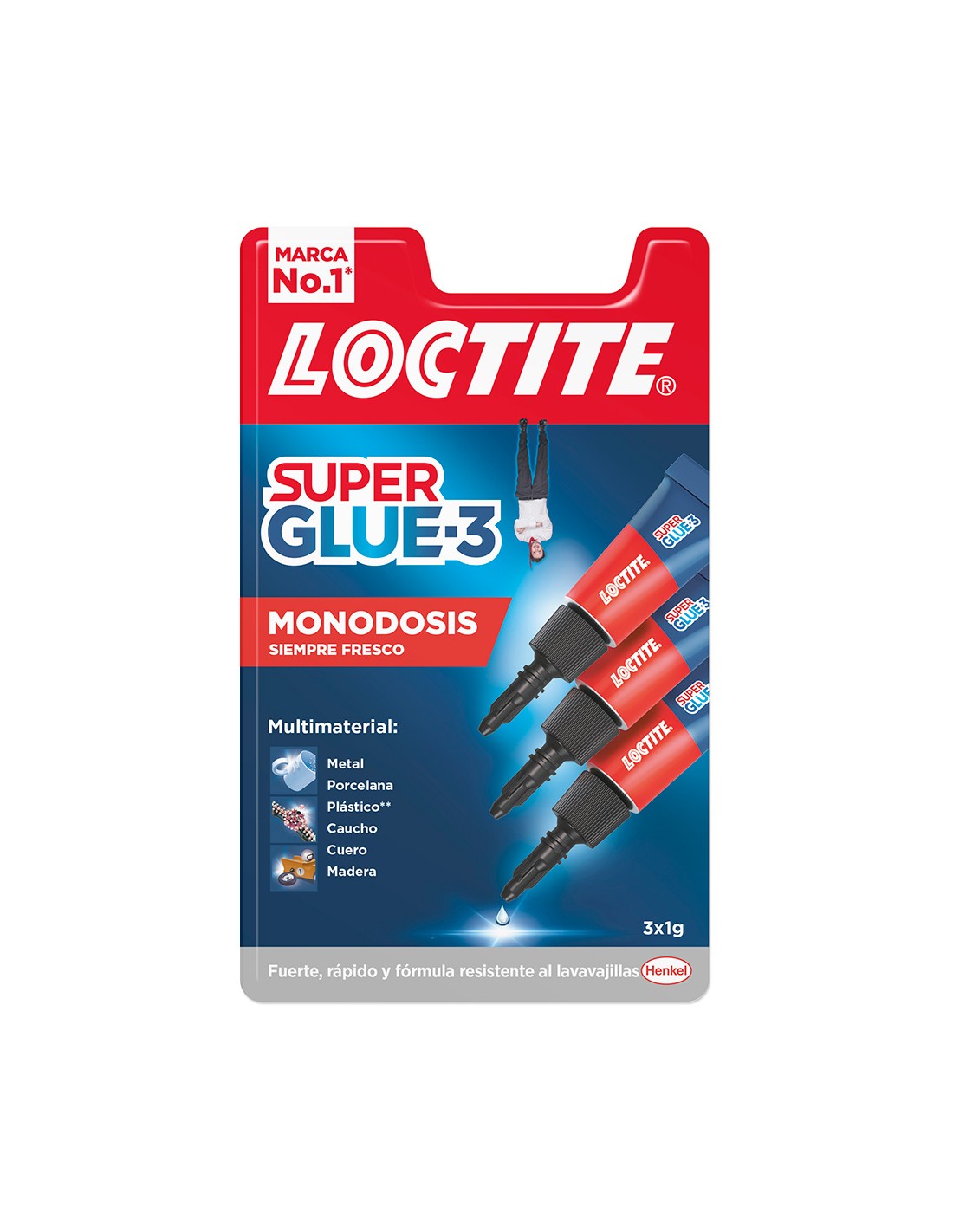 Super glue mini trio 3 x 1 g practico envase de una dosis adhesivo universal instantaneo maxima fuerza union en pocos segundos nueva formula resitente al agua y al lavavajillas para pegar en pocos segundos todos los tipos de materiales: porcelana, madera, plastico, metal, goma, cuero, marmol