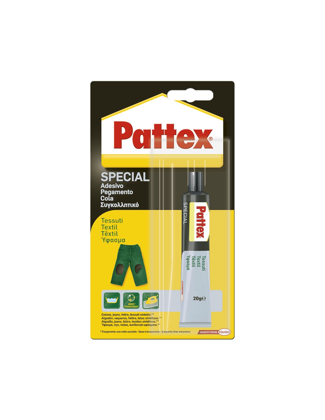 Pattex especial textil 20g adhesivo especifico para tejidos resulta perfecto para uniones entre todo tipo de tejidos tales como algodon, tejano, fibras sinteticas, entre otros