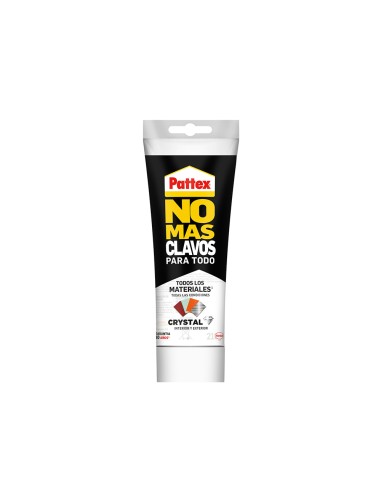 Pattex no mas clavos para cristal 216g es un adhesivo transparente libre de disolventes basado en la tecnologia flex tec de henkel, ideal para realizar trabajos de reparacion, bricolaje y montaje en general. ofrece un excelente poder de pegado para todo tipo de aplicaciones, materiales y situaciones. apto para materiales porosos y no porosos como madera, corcho, cemento, mortero, piedra, textiles, carton, cristal, vidrio, ceramica, azulejos, pvc, plasticos, espejos...