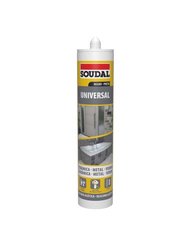 Soudal sellador de silicona negra 280 ml, acetica para uso general. muy elastica. ideal para aplicaciones generales de construcción, puesto que se puede utilizar tanto para juntas interiores como exteriores. sin embargo, por su contenido de acido acetico no debe utilizarse sobre soportes sinteticos. no se puede pintar. ideal para juntas sobre diversos soportes, tanto porosos como no porosos como ladrillos, madera, placas de yeso, baldosas, porcelana, vidrio...
