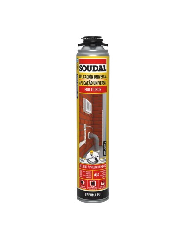 Espuma pistola clásica 750 ml. espuma expansiva de poliuretano con excelentes propiedades térmicas y acústicas que protege contra el calor, frío, humedad y el ruido. especialmente diseñada para el aislamiento y relleno de agujeros y huecos, tanto en interiores como en exteriores. la espuma expansiva soudal ofrece un rendimiento óptimo. potencia de aislamiento +/- 0,04 w/mk