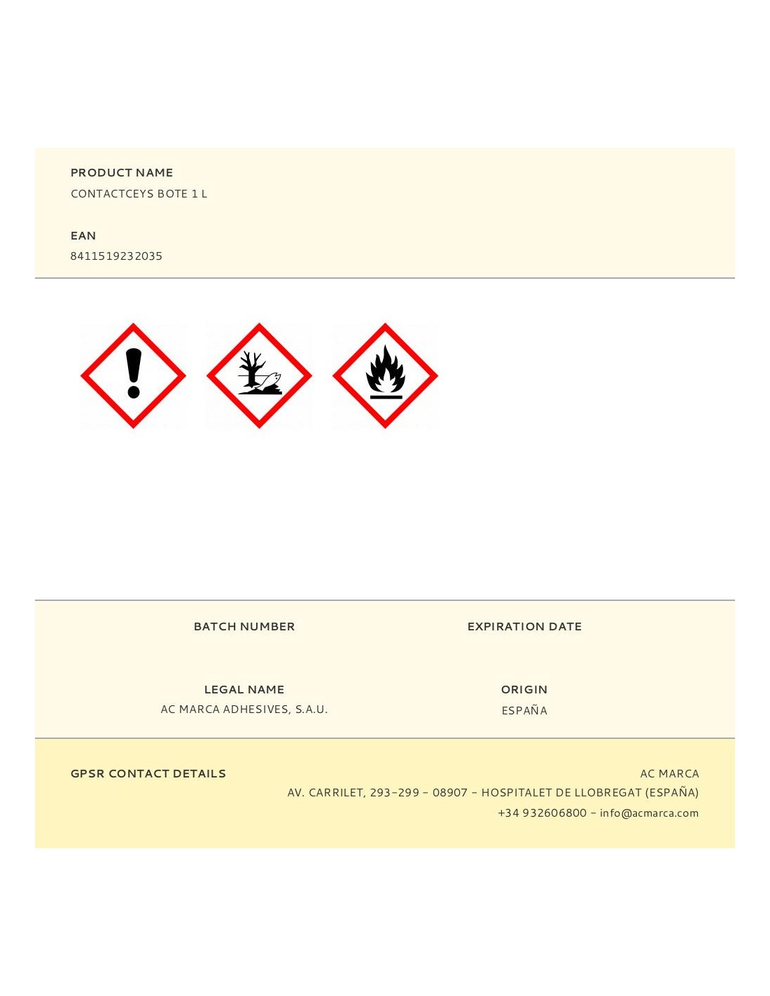 Contactceys bote 1 l. cola de contacto en base neopreno, muy polivalente y de uso general para unir multitud de materiales. proporciona uniones resistentes, flexibles y duraderas. en especial proporciona inmejorables resultados para pegar cuero, piel, madera, goma, caucho, etc.