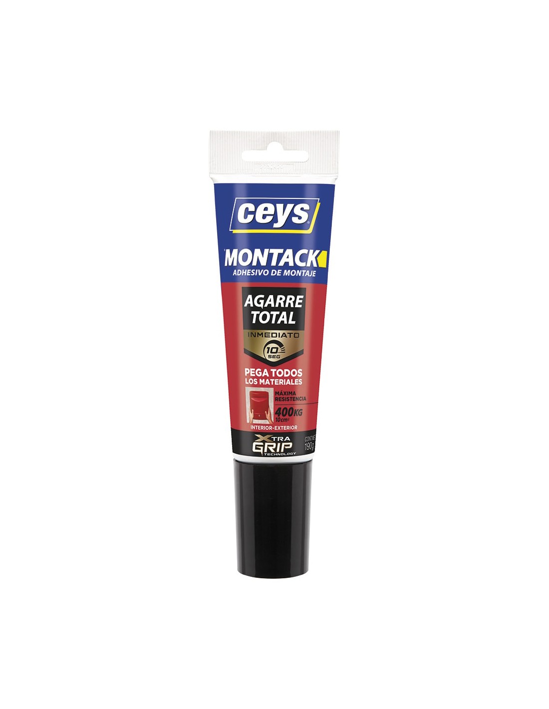 Ceys montack inmediato tubo 190g. masillas adhesivas para pegar y fijar todos los materiales. sustituye clavos, tornillos y tacos relleno y resistencia fija zócalos, rodapiés, molduras, perfiles, travesaños, azulejos, cajas de electricidad, rejillas de ventilación montaje de paneles para revestimientos en paredes, marcos de puertas, estanterías.