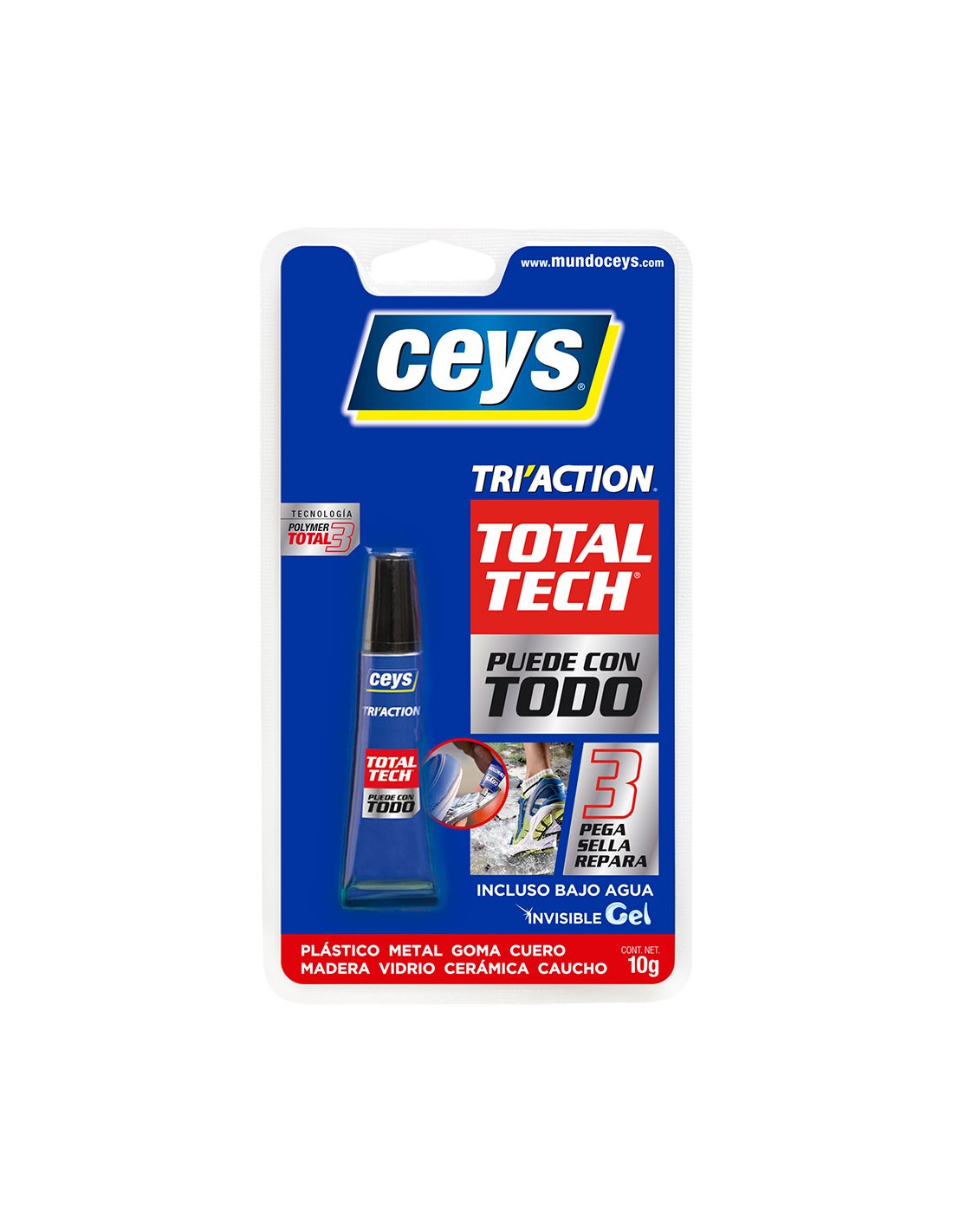 Ceys tri'action blister 10g 12unid. adhesivos base polímero. pegan, sellan y reparan todo tipo de materiales, tanto en interior cómo en exterior.