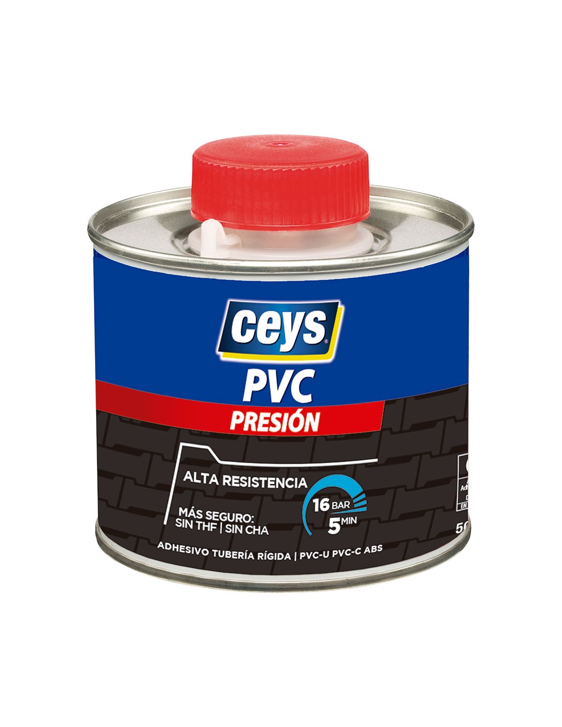 Adhesivo pvc presion tapon pincel 500 ml no contiene thf. mayor seguridad de aplicación. permite el pegado en continuo gracias a su velocidad. presenta resistencias a presión superiores a las de la propia tubería