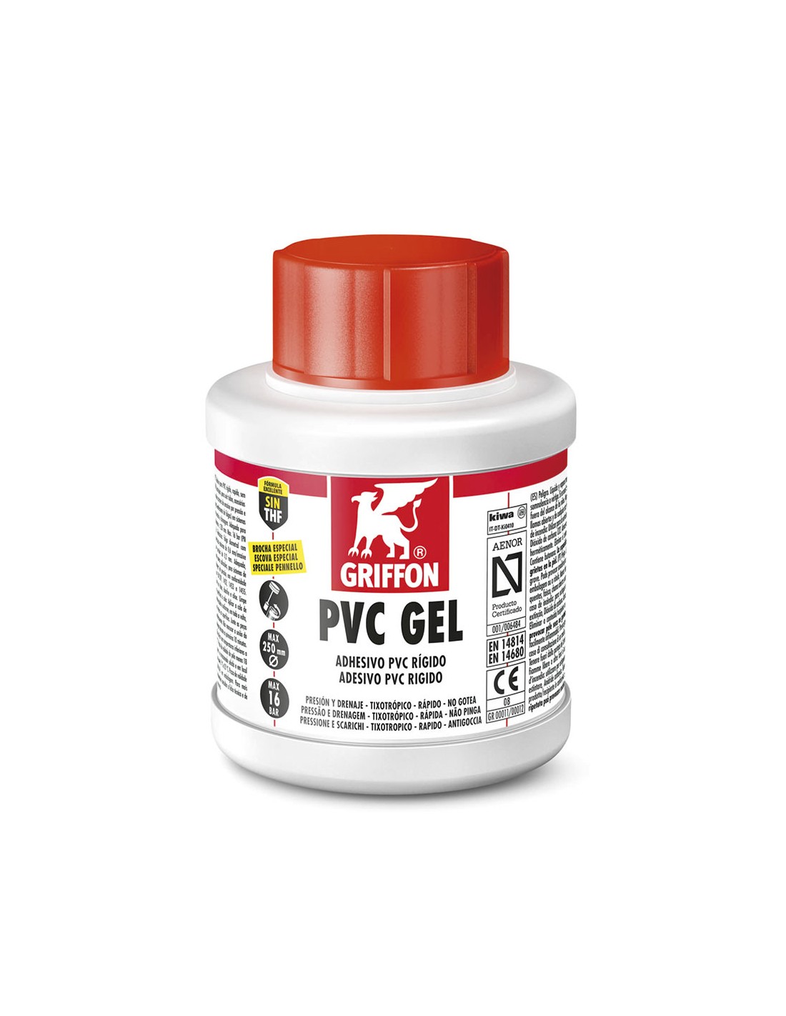 Adhesivo para pvc rígido, rápido, tixotrópico, sin thf. para la unión de tubos, manguitos y empalmes con ajustes encajados y más holgados (relleno de ranuras) en sistemas de presión y desagüe. con brocha especial para una aplicación rápida y sencilla. apto para diámetros 250mm. máx. 16 bar (pn 16). tolerancia máxima 0,6mm con ajuste holgado / 0,2mm con ajuste forzado. apto para, entre otros, sistemas de tuberías conformes con las normativas en 1329, 1452, 1453 y 1455.