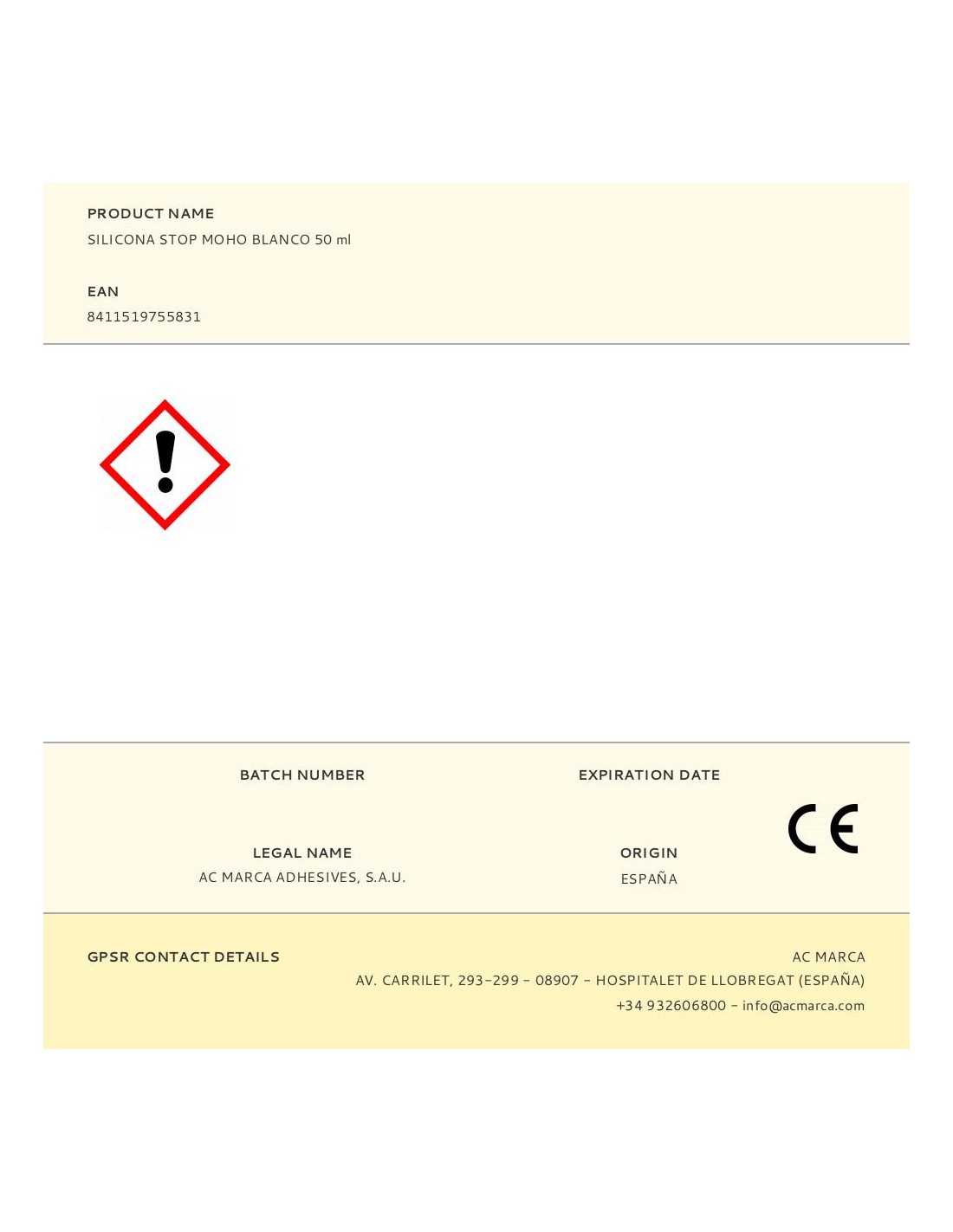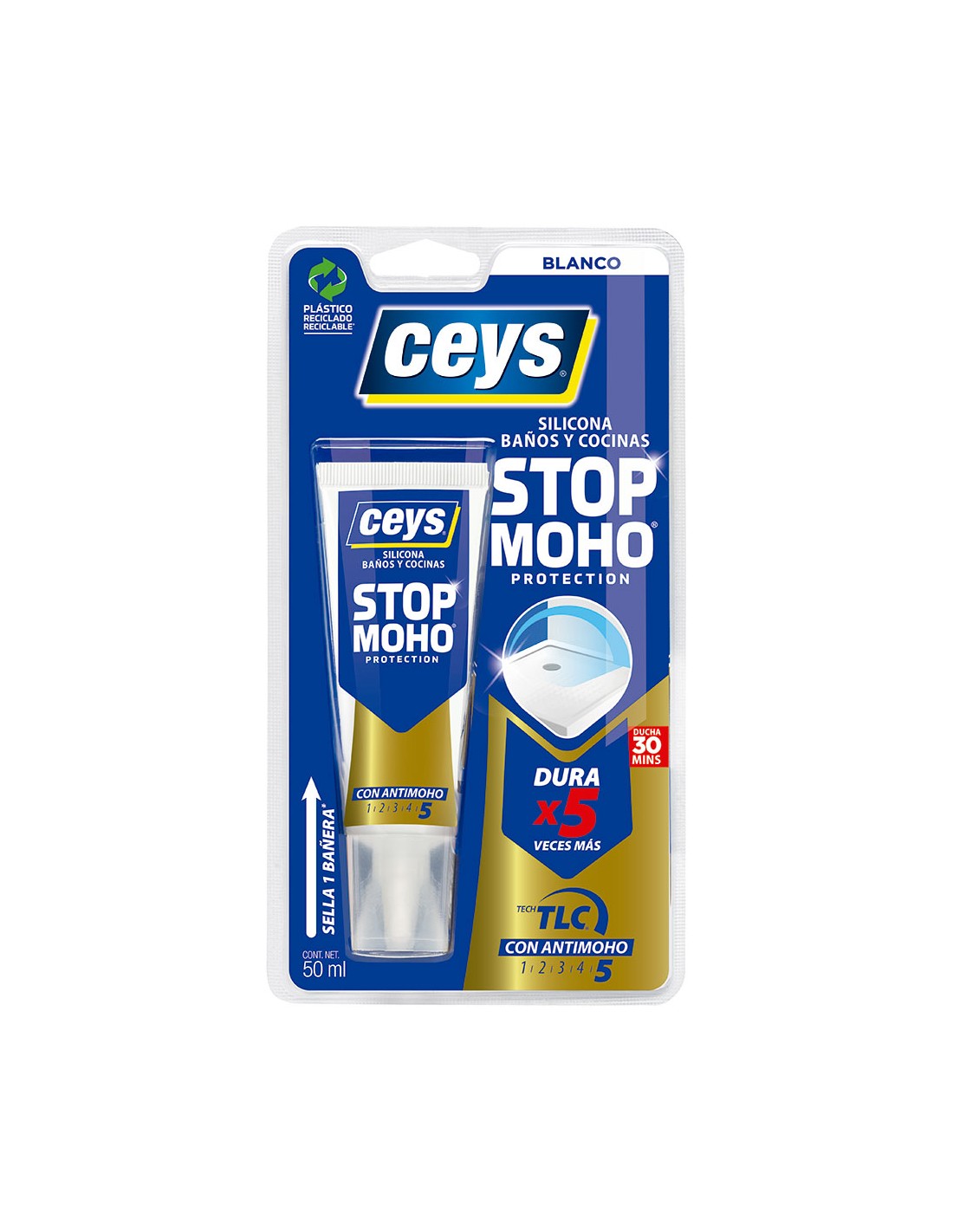 Silicona blanca 50 ml para baños y cocinas con protección antimoho que dura 5 veces más. secado en 30 minutos