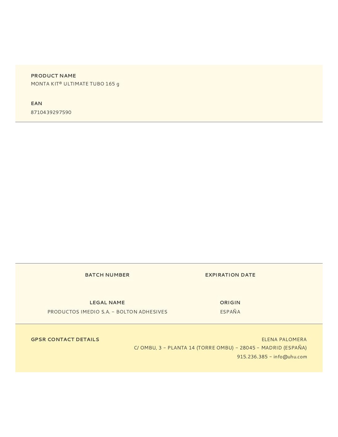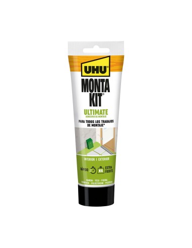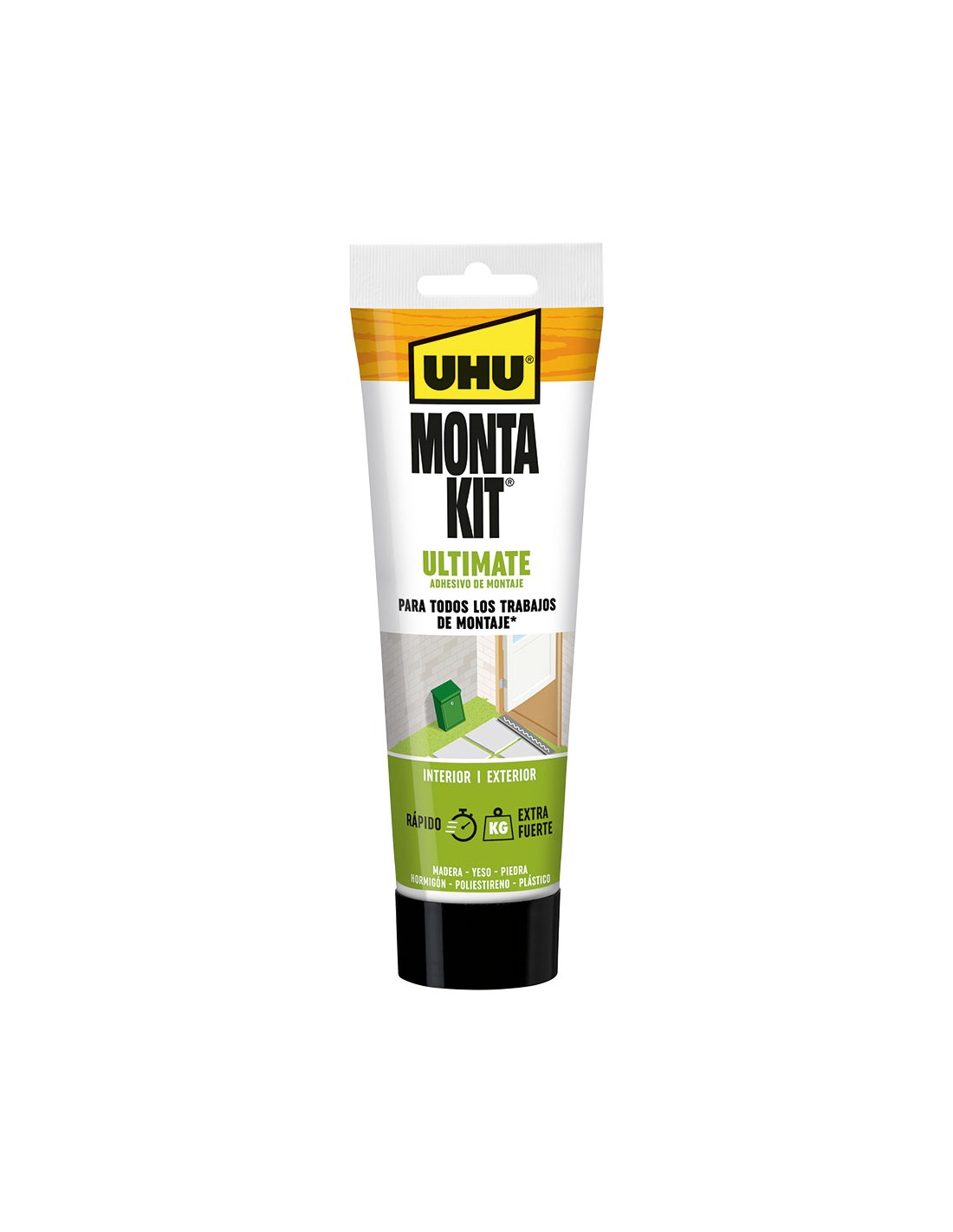 Montakit ultimate tubo 165g *12 uhu adhesivo de montaje polimero extremadamente resistente, universal y sin disolventes para unir todo tipo d emateriales en superficies porosas y no porosas. resiste la carga después de horas. sin usar clavos ni tornillos. para uso interior y exterior. dimensiones: 35x52x188mm