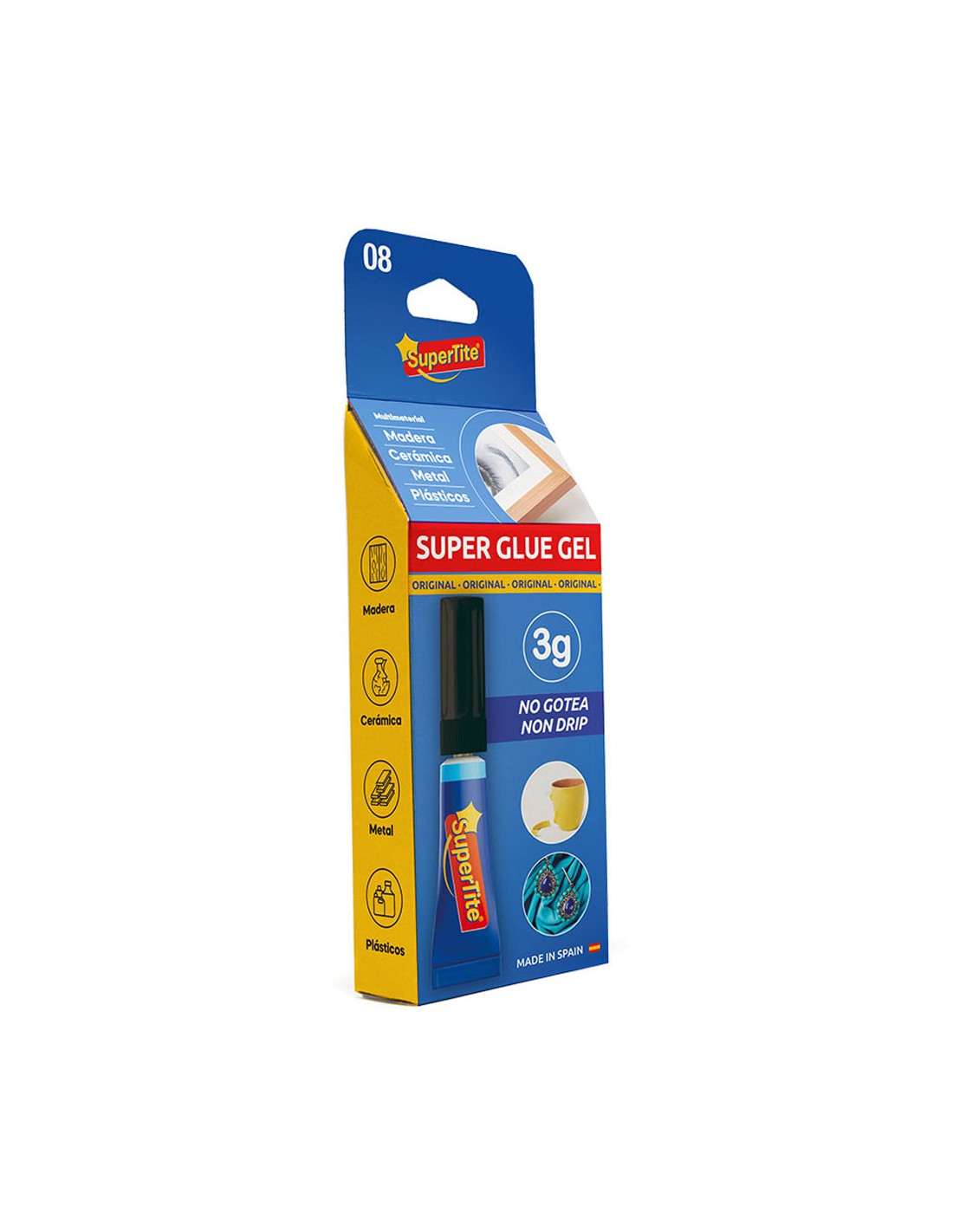Adhesivo instantant gel blister 3 g, unión de una gran diversidad de materiales, como metales, porcelana, mármol, plásticos, goma, vidrio, caucho, madera, etc. entre sí o combinados.empleo en bricolaje y en industria en general. uniones donde los materiales a pegar no coincidan perfectamente y se precise que el adhesivo haga de relleno. aplicaciones en posición vertical.
