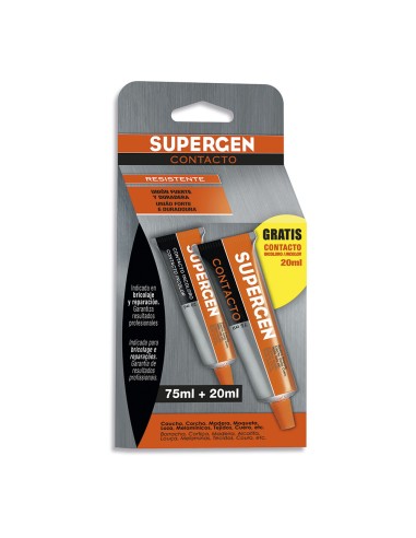 Supergen contacto 75ml + incoloro 20ml pr 62600. supergen de contacto es de fácil aplicación y garantiza siempre unos resultados auténticamente profesionales. mantiene sus propiedades durante 2 años.resiste a temperaturas desde -10°c a 110°c