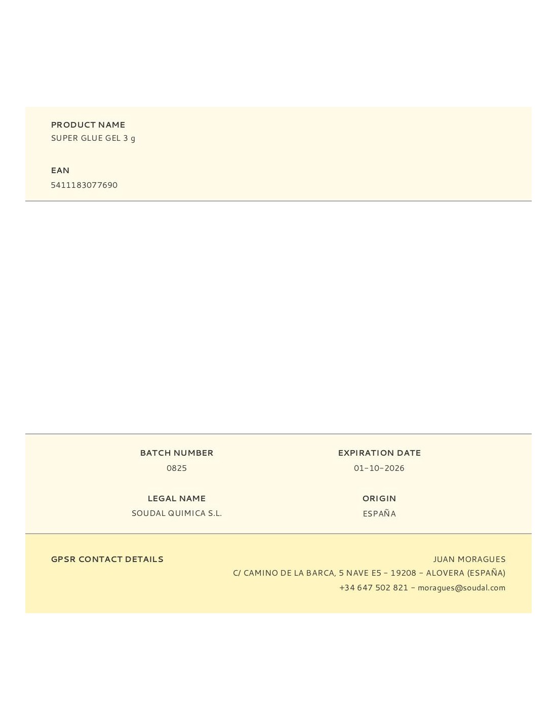 Adhesivo de cianoacrilato de pegado inmediato en formato gel. no gotea, se puede usar en aplicaciones verticales y materiales porosos.